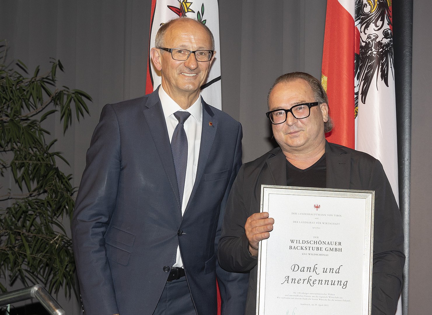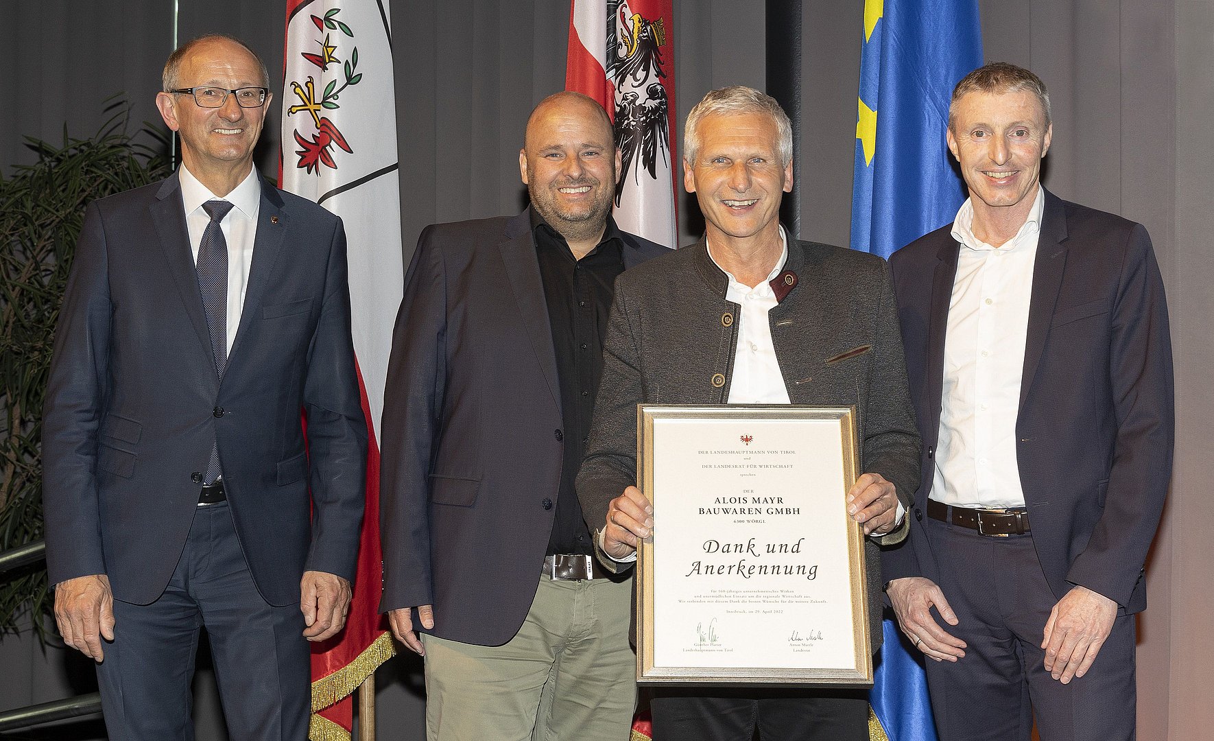 - Urkunde „Tiroler Traditionsbetrieb“ für runde Betriebsjubiläen im Jahr 2022