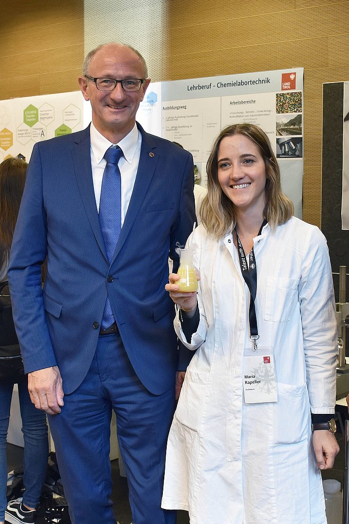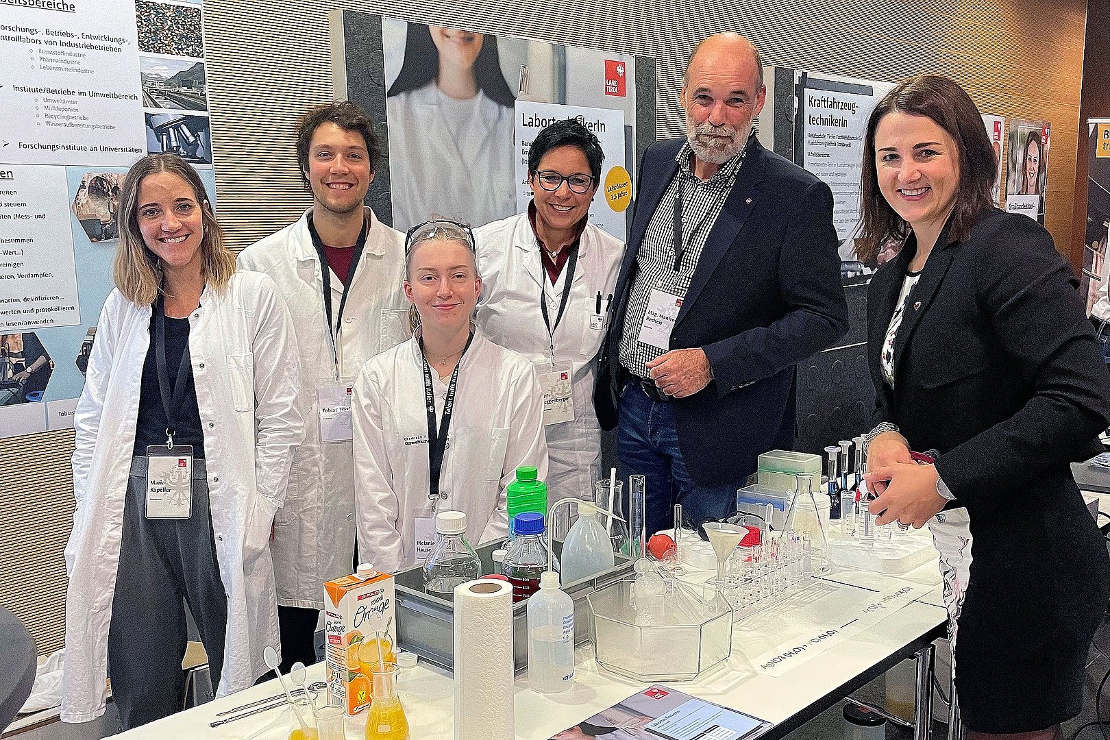 Im Rahmen der Veranstaltung konnten sich die SchülerInnen an zahlreichen Ständen ein Bild der unterschiedlichen Lehrberufe beim Land Tirol machen. Erfahrungsberichte und Informationen gab es aus erster Hand: Landes-MitarbeiterInnen erzählten aus ihrem Berufsalltag und beantworteten Fragen rund um Lehrausbildung, Land Tirol als Arbeitgeber oder Teamwork. Zudem konnte an einigen Ständen sogar bereits selbst Hand angelegt werden – so konnten sich die SchülerInnen unter anderem beim Stand der Chemich-technischen Umweltschutzanstalt (CTUA) als ChemielaborantIn versuchen.
