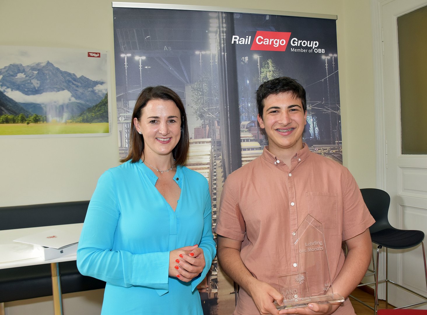 Er kommt aus Strass im Zillertal und absolviert eine Lehre zum Speditionskaufmann im dritten Lehrjahr bei der Rail Cargo Austria AG in Innsbruck: Der „Lehrling des Monats Juli 2023“ heißt Felix Thaler. Arbeits- und Jugendlandesrätin Astrid Mair besuchte den 18-Jährigen in seinem Betrieb und überreichte ihm im Rahmen einer Feier persönlich die Auszeichnung.