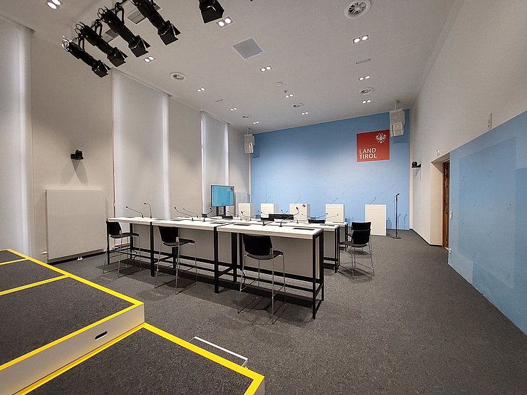 Ab sofort finden die Medientermine des Landes Tirol wieder planmäßig im Medienraum des Landes statt, nachdem diese coronabedingt in den vergangenen Monaten im Großen Saal stattgefunden haben. Im Zuge einer umfassenden Sanierung des Medienraums wurde dieser technisch auf einen neuen und modernen Stand gebracht, um den MedienvertreterInnen die Berichterstattungen so unkompliziert und einfach wie möglich zu machen. Dafür wurden seitens des Landes rund 715.000 Euro investiert.