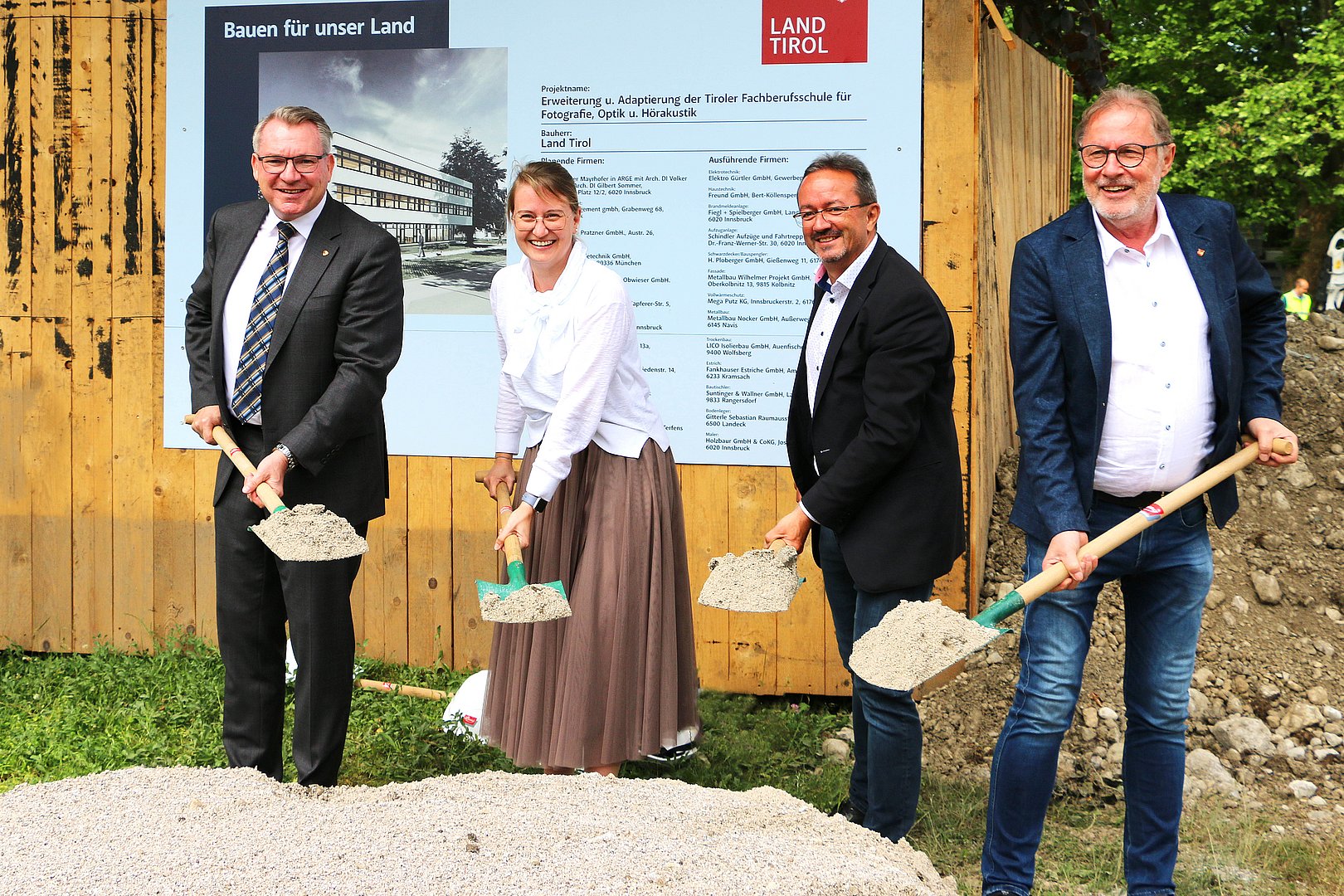 Im Rahmen des öffentlichen Vergabeverfahrens wurden mehrheitlich Tiroler Unternehmen ermittelt. „Das zeigt einerseits, dass unsere Tiroler Betriebe absolut konkurrenzfähig sind. Andererseits freut es mich, dass dieses Landesbauprojekt einmal mehr ein Beispiel für geschlossene regionale Wirtschaftskreisläufe ist“, führt LR Tratter aus. Die Erweiterung der TFBS wirkt sich zudem positiv auf den Standort Hall in Tirol aus, wie Bürgermeister Christian Margreiter weiß: „Mit der TFBS ist Hall das Ausbildungszentrum für Fotografie, Optik und Hörakustik in Österreich. Gemeinsam mit den vielen anderen Bildungseinrichtungen in der Stadt – wie etwa die UMIT, das AZW oder auch die Tiroler Fachberufsschule für Garten, Raum und Mode – bieten wir ein umfassendes Angebot.“