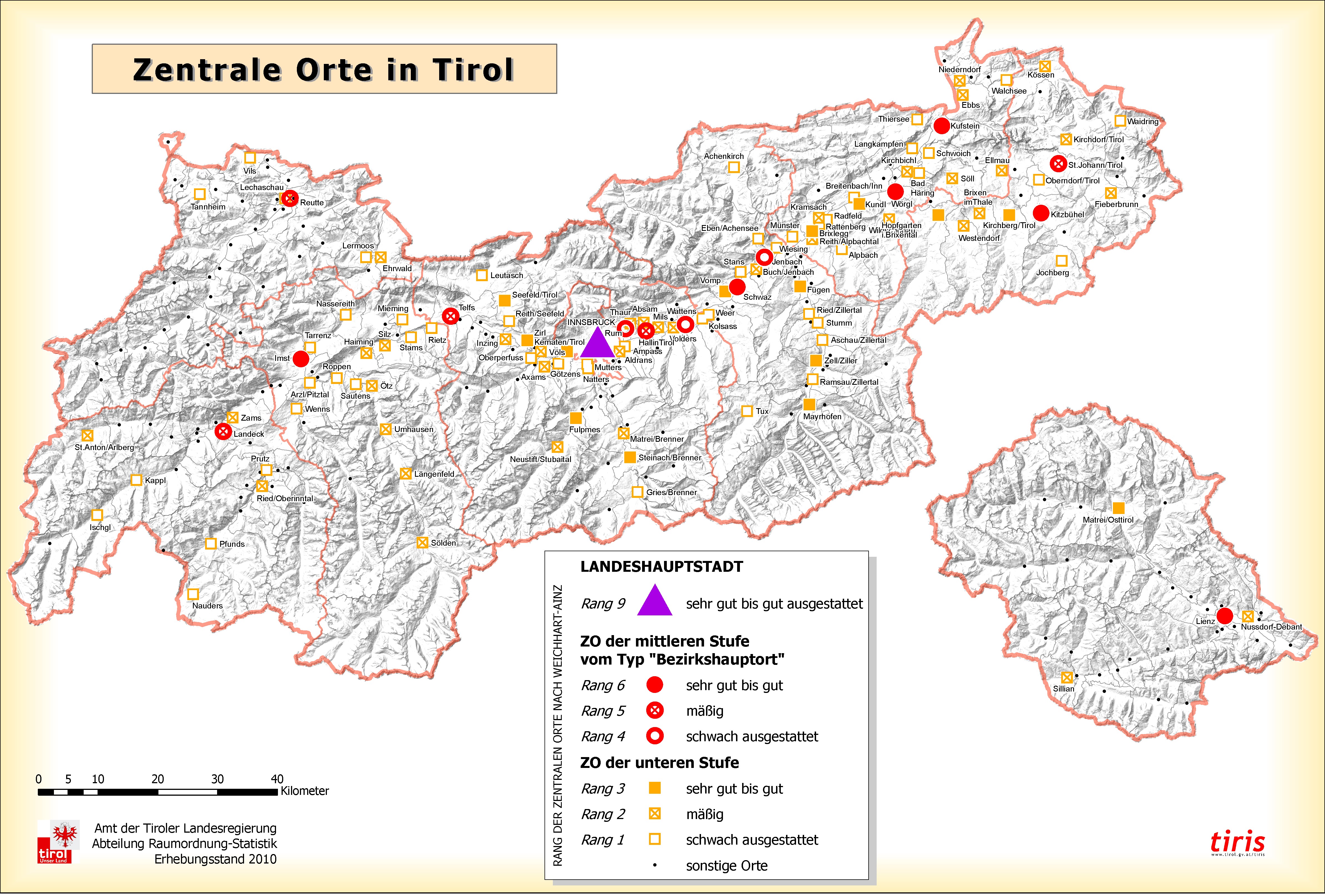 Zentrale Orte in Tirol 2010