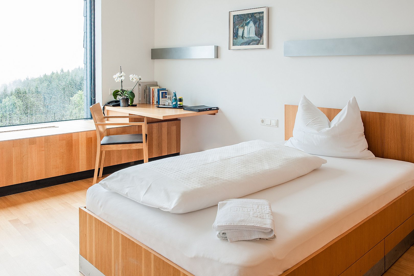 Alle 47 Ein- und Zweibett-Zimmer sind Nichtraucherzimmer, sehr hell und mit allen gängigen Annehmlichkeiten eingerichtet. Die Ausstattung mit Holzböden, Holzmöbeln sowie speziellen Matratzen und Bettdecken lassen auch Gäste mit Allergien einen genussvollen Aufenthalt erleben.