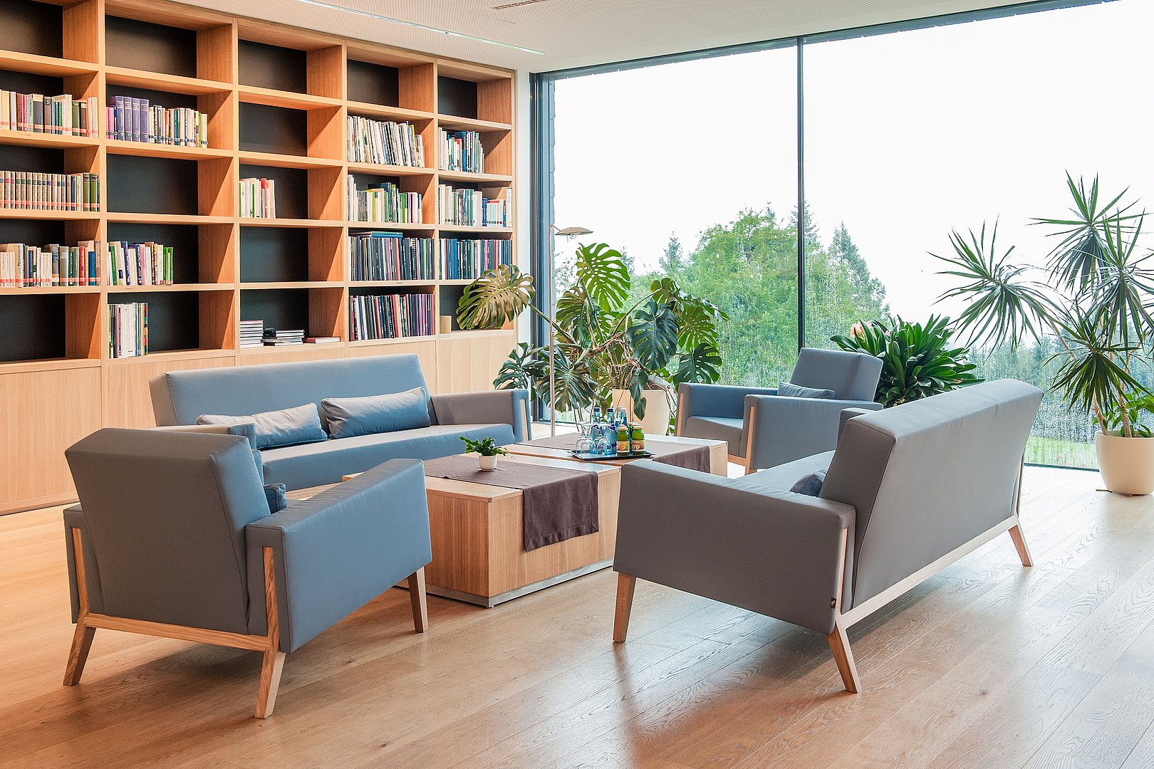 - Bibliothek mit Fachzeitschriften und Auswahl an Tageszeitungen