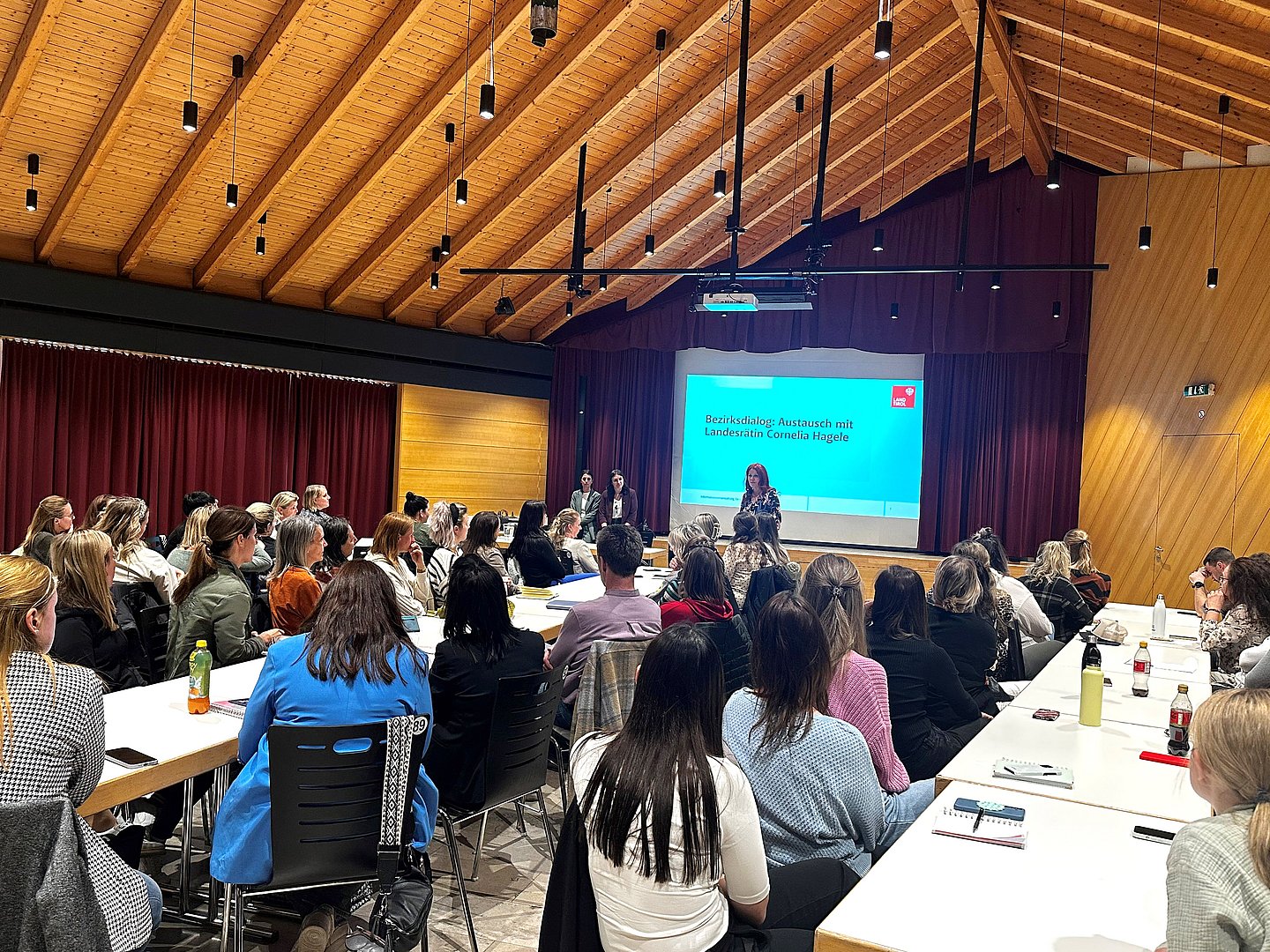 Im Fokus des Bezirksdialogs im Bezirk Innsbruck-Land stand vor kurzem die aktuelle Personalsituation in der Elementarbildung. Bildungslandesrätin Cornelia Hagele betonte, dass der Austausch mit regionalen ExpertInnen eine zentrale Rolle spiele. „Gemeinsam wollen wir konkrete Lösungsansätze für die aktuelle Personalsituation entwickeln und die Arbeitsbedingungen weiter verbessern. Ziel ist es, die Qualität und Versorgung in der Kinderbetreuung langfristig sicherzustellen“, so LRin Hagele. Die Bezirksdialoge sollen eine Plattform für LeiterInnen und Fachkräfte bieten, um zentrale Themen im Bereich Elementarpädagogik zu diskutieren.