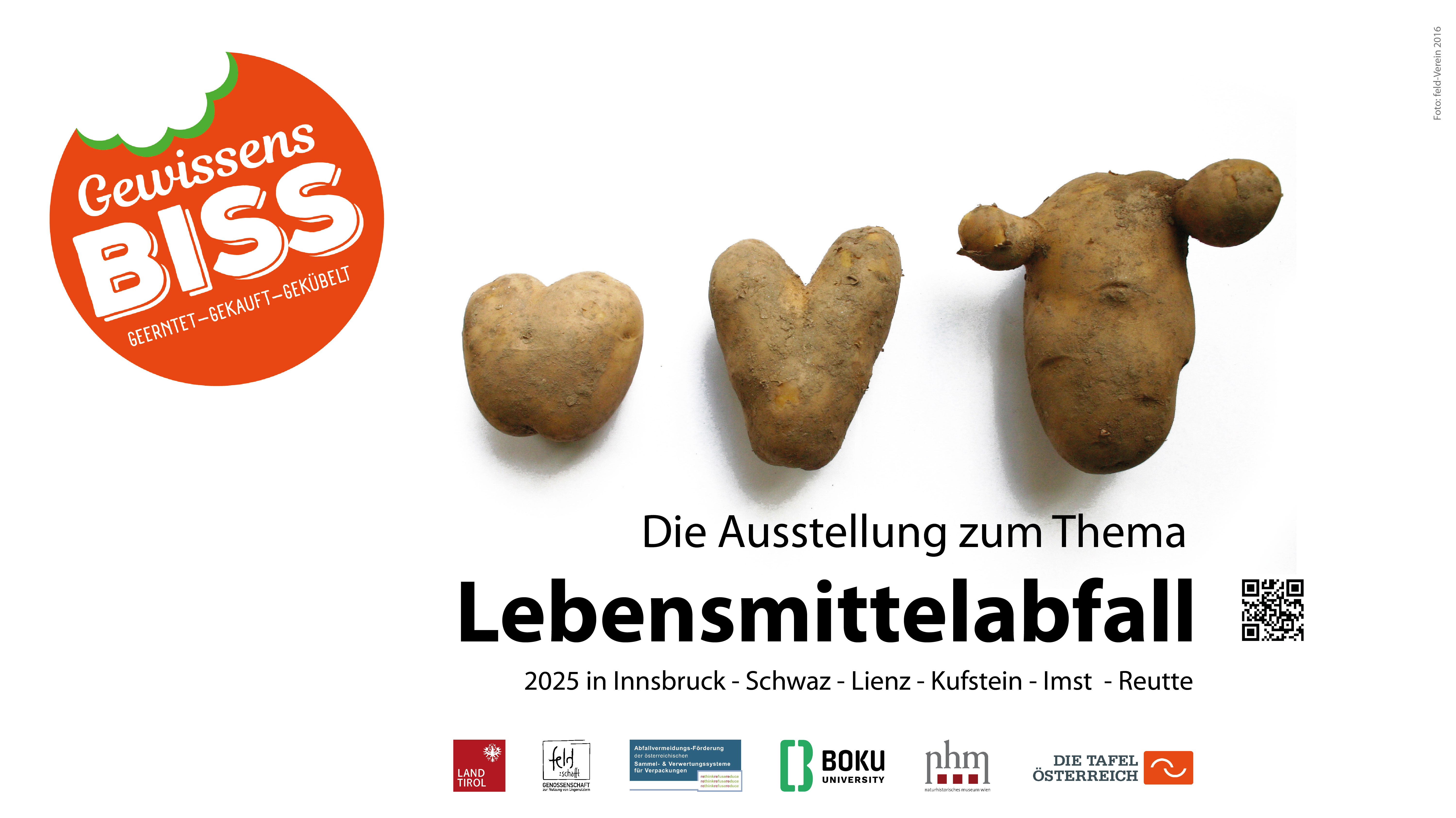 Jedes dritte Lebensmittel weltweit wird vernichtet. Viele Produkte schaffen es gar nicht erst vom Feld in den Supermarkt, weil sie den Ansprüchen nicht genügen – zu krumm, zu klein, zu groß. Ein weiterer großer Teil landet zwar bei uns im Kühlschrank, letztlich aber doch in der Mülltonne. Vermeidbare Lebensmittelabfälle entstehen entlang der gesamten Wertschöpfungskette vom Acker bis zum Teller – bei der Produktion, im Handel, in der Außer-Haus-Verpflegung und zu einem großen Teil auch in Privathaushalten. Dieser verschwenderische Umgang mit Lebensmitteln hat Konsequenzen für die Umwelt, das Klima und die Ernährungssicherheit. Eine Ausstellung der Tafel Österreich widmet sich unter dem Namen „GewissensBISS | geerntet. gekauft. gekübelt“ diesem Thema. Die Tiroler Genossenschaft feld:schafft holt die Ausstellung nun mit Unterstützung zahlreicher Partner nach Tirol. Das Land Tirol fördert die insgesamt sechs Stationen der Wanderausstellung mit rund 17.500 Euro. Erstmals in Tirol zu sehen ist die Ausstellung im Atrium des Innsbrucker Landhaus 2 von 11. Juni bis 17. Juli 2025.