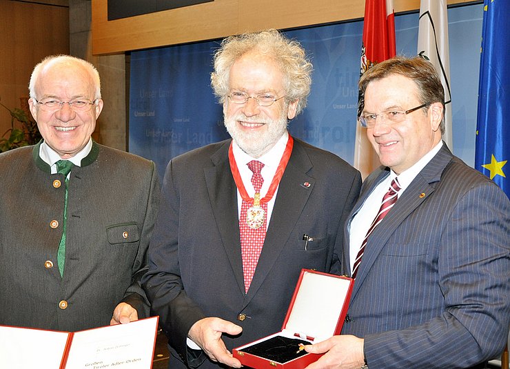 Der österreichische Quantenphysiker und Hochschullehrer an der Universität Wien Anton Zeilinger, der in seiner Vergangenheit auch als Professor an der Universität Innsbruck und dort als Vorstand des Institutes für Experimentalphysik tätig war, hat den Nobelpreis für Physik erhalten. Er wurde unter anderem durch seine medienwirksamen Experimente zur Quantenteleportation in Innsbruck und Wien bekannt und im Jahr 2013 vom Land Tirol mit dem Großen Tiroler Adler Orden ausgezeichnet. „Anton Zeilinger blickt auf eine außergewöhnliche Laufbahn zurück. In seiner Zeit als Professor für Physik an der Universität Innsbruck hat sich dieser Wissenschaftler von Weltrang auch in besonderer Weise um den Forschungsstandort Tirol verdient gemacht. Zudem zeigt die Auszeichnung die hervorragende Qualität der Universität Innsbruck – allen voran auch des Studienzweiges Physik“, würdigt LH Günther Platter die großen Verdienste dieser weit über die Landesgrenzen hinaus hoch geschätzten Persönlichkeit und gratuliert herzlich zum Erhalt des Physiknobelpreises.