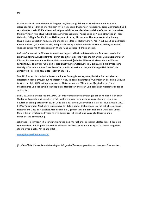 Das Abschlusskonzert am 5. September markiert den Höhepunkt einer intensiven Probenwoche. In Detailarbeit studieren die NachwuchsmusikerInnen Werke von Antonio Vivaldi, Antonín Dvořák und Max Richter ein. Ein besonderes Highlight ist der Auftritt des international gefragten Violinisten Johannes Fleischmann, der als Solist in Vivaldis „Frühling“ und Richters „The Four Seasons – Recomposed“ seine Virtuosität unter Beweis stellt. Bisherige Konzerttourneen führten den Wiener Geiger in die Carnegie Hall New York, die Suntory Hall in Tokio oder den berühmten Wiener Musikverein. „Eine Woche voller harter Arbeit, aber auch eine Woche voller Spaß und neuer Freundschaften. Beim Abschlusskonzert bringt die Orchesterakademie das Ergebnis auf die große Bühne“, freut sich LRin Hagele. „Ein Fest für die jungen Musizierenden, aber auch für das Publikum.“