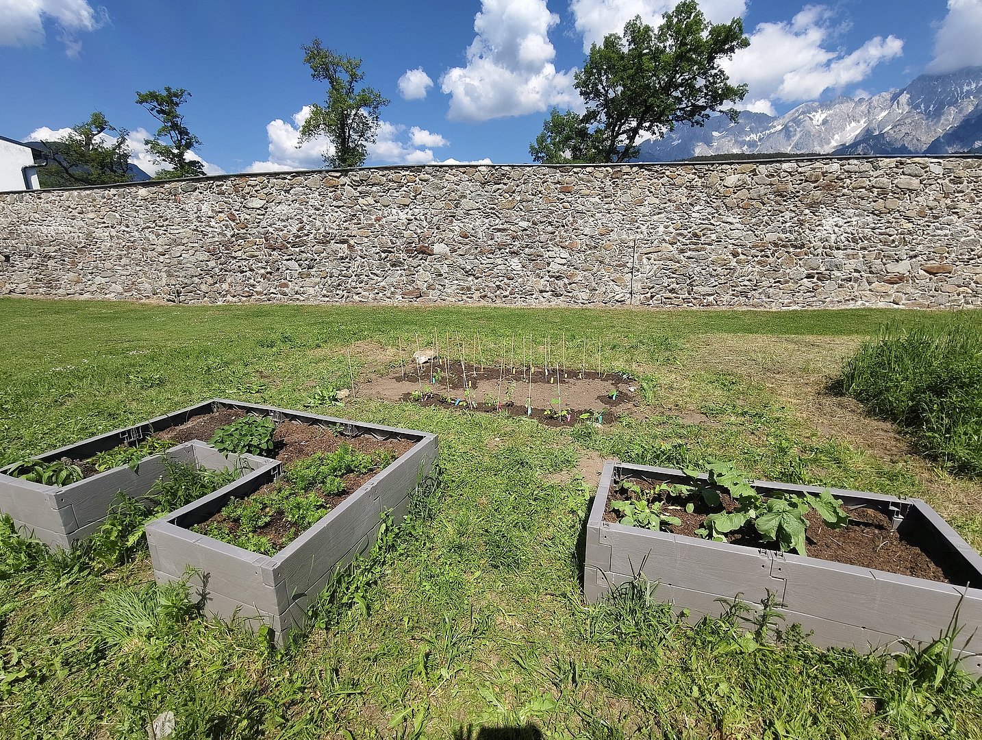 Nachdem bereits vergangenes Jahr eine Kräuterspirale und eine „Eidechsenburg“ angelegt wurden, packten die SchülerInnen auch dieses Schuljahr wieder kräftig an. Im Garten wurden dieses Frühjahr neue Hochbeete gebaut und bepflanzt sowie eine Hecke aus essbaren Beerensträuchern angelegt. Zudem ist ein eigener Komposthaufen entstanden. In den letzten Schulwochen wird nochmals intensiv im Garten gearbeitet: Eine selbst gebaute Pergola soll für Schatten im Outdoor-Klassenzimmer sorgen. „Das Projekt im Meinhardinum ist viel mehr als nur ein Schulgarten. Hier lernen die Jugendlichen auch, wie man konstruktiv zusammenarbeitet, wie Lebensmittelanbau funktioniert, welchen Einfluss wir mit unseren täglichen Kaufentscheidungen auf die heimische Landwirtschaft sowie das Klima haben und wie ein Garten angelegt wird, der heimischen Pflanzen, Insekten und vielen weiteren kleinen Tieren einen Lebensraum bietet“, so LR Zumtobel.