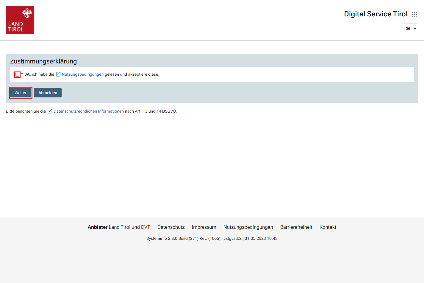Sie können sich bei Digital Service Tirol direkt über service.tirol.gv.at anmelden.