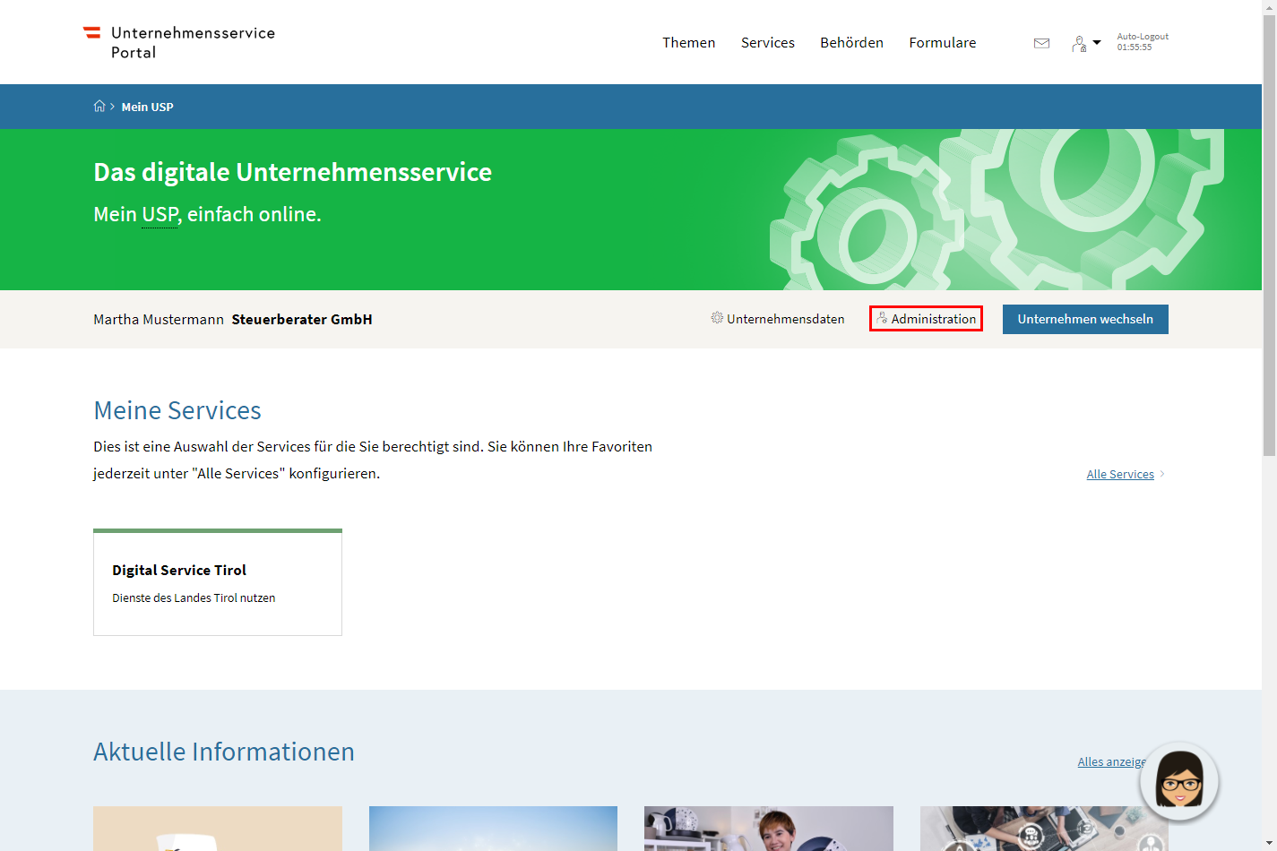 Sie können dirket im Unternehmensservice Portal selbst über einen Absprung, bei Digital Service Tirol einsteigen.