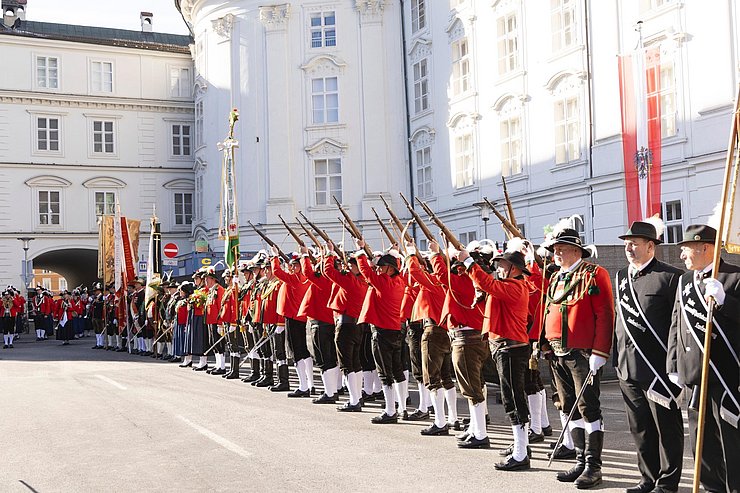 Als feierlicher Ausklang des ersten Konferenztags findet vor der Hofburg Innsbruck ein landesüblicher Empfang statt. Die Öffentlichkeit ist herzlich eingeladen, dieses eindrucksvolle Traditionsspektakel zu bewundern.