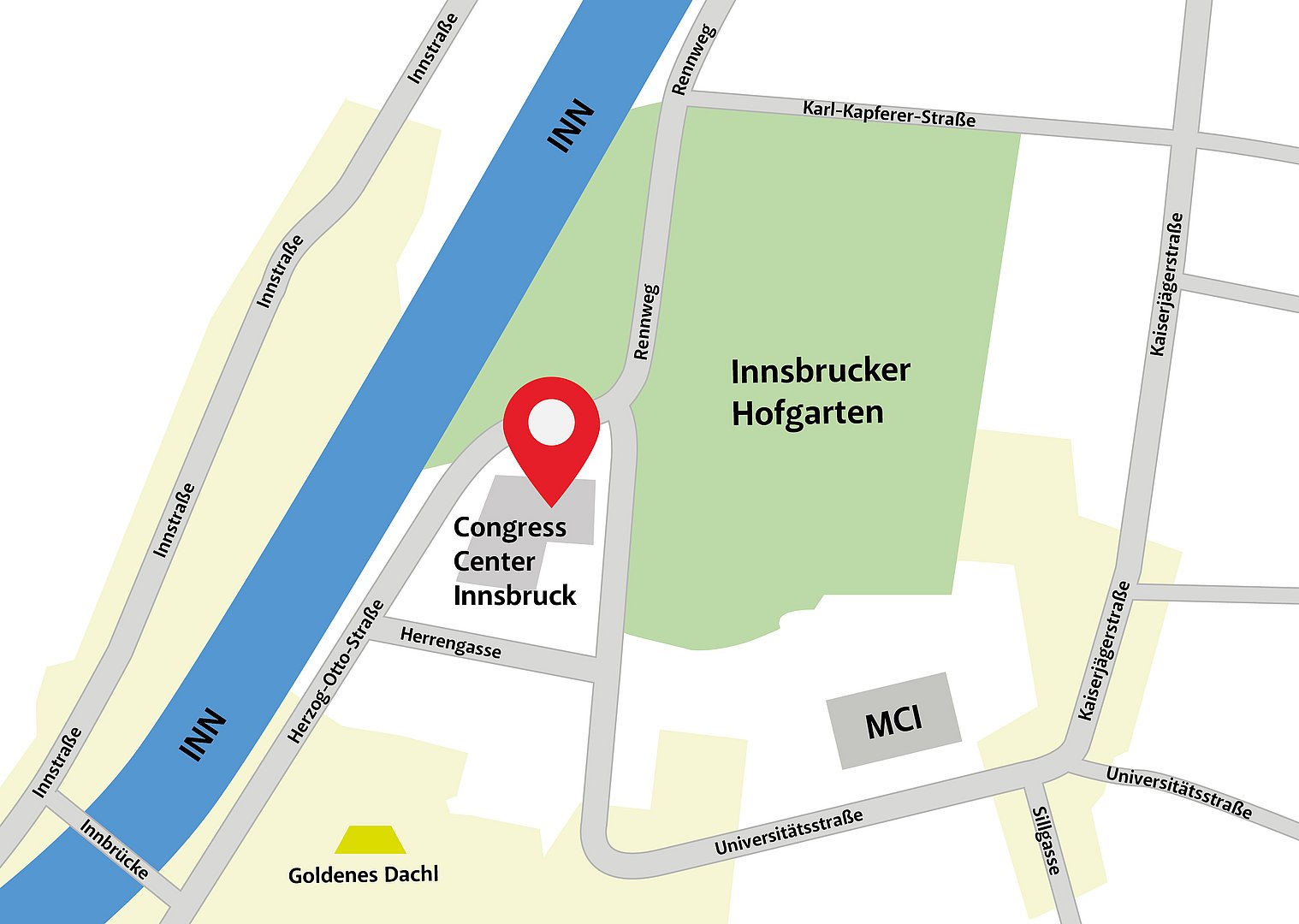 Der Congress Innsbruck liegt direkt im Zentrum der Stadt und ermöglicht dem Veranstaltungsbesucher:innen diverse Möglichkeiten zur Anreise, empfohlen wird die Anreise mit öffentlichen Verkehrsmittel.