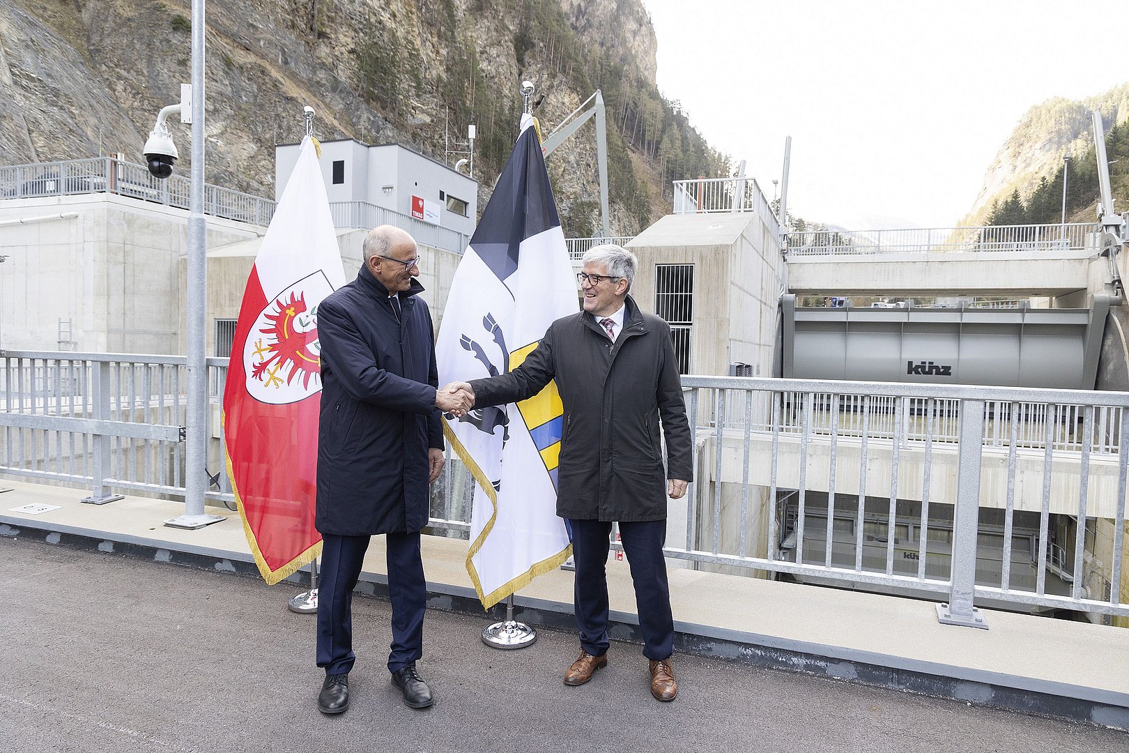 Schauplatz Gemeinschaftskraftwerk Inn bei Nauders / Martina (Schweiz): Dort fand heute, Donnerstag, der Auftakt einer erstmaligen Zusammenkunft statt. Auf Einladung von LH Anton Mattle kam Tirols Landesregierung mit der Regierung des Kantons Graubünden (Schweiz) unter Regierungspräsident Jon Domenic Parolini zusammen. Der geschichtsträchtige Standort wurde bewusst gewählt: „Im österreichisch-schweizerischen Grenzgebiet entstand vor vielen Jahren dieses größte Laufwasserkraftwerk im Alpenraum. Heute produziert es jährlich über 400 Gigawattstunden Strom aus heimischer Wasserkraft – ein Gemeinschaftsprojekt der TIWAG und der Engadiner Kraftwerke. Und so steht es symbolhaft für eine partnerschaftliche Zusammenarbeit, deren Bedeutung wir mit diesem Treffpunkt heute nochmals Ausdruck verleihen“, betont LH Mattle. Dass das Kraftwerk nach wie vor Vorzeigebeispiel für eine erfolgreiche regionale Kooperation darstellt, davon waren alle Beteiligten heute überzeugt. So war es auch das Thema Energie und Wasserkraft, das im Zentrum einer anschließenden Arbeitssitzung in Pfunds mit allen anwesenden Regierungsmitgliedern stand. „Für eine gelingende Energiewende und einem Mehr an erneuerbarer Energie und Energiesicherheit braucht es nicht nur die Anstrengung vieler, sondern vor allem auch den Austausch rund um selbige Herausforderungen, welchen wir im Alpenraum gegenüberstehen“, ist LH Mattle überzeugt. Dazu zähle auch das Wolfsmanagement, die grenzüberschreitende Sicherheit und Zusammenarbeit sowie der nachhaltige Tourismus.