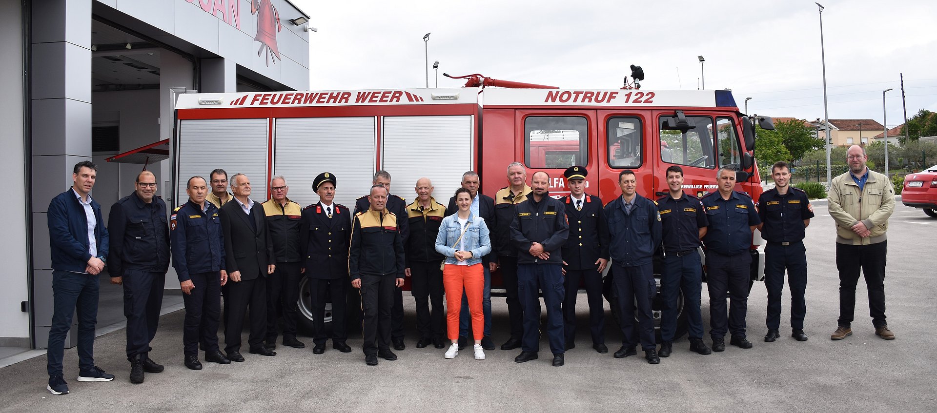 Weer im Tiroler Unterland und die Gemeinde Sveti Filip i Jakov in Kroatien sind knapp 800 Kilometer voneinander entfernt. Diese Strecke zurückgelegt hat ein Tanklöschfahrzeug der Freiwilligen Feuerwehr Weer im Rahmen der Feuerwehrpartnerschaft Tirol-Kroatien. Im Beisein von Sicherheitslandesrätin Astrid Mair wurde das Fahrzeug gestern, Dienstag, an die Freiwillige Feuerwehr Sveti Filip i Jakov in der kroatischen Region Zadar übergeben. Noch vor der offiziellen Übergabe stand das Weerer Einsatzfahrzeug bereits im Einsatz: In Folge der schweren Überschwemmungen in der Region Zadar – insbesondere im Ort Obrovac – wurde das Einsatzfahrzeug für das Auspumpen von Gebäuden eingesetzt. Auch weitere Fahrzeuge, die im Rahmen der Feuerwehrpartnerschaft der kroatischen Feuerwehr zur Verfügung gestellt wurden, werden im Krisengebiet eingesetzt.