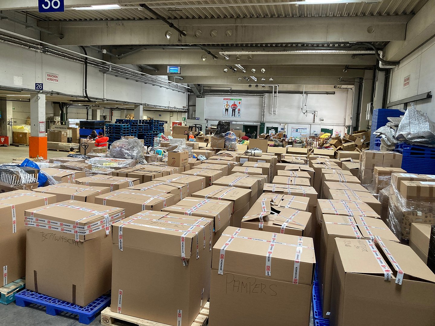 - Erste Sortierungen enthalten bereits 250 Schlafsäcke, über 3.000 Bettwäschen, 1.500 Handtücher, 1.200 Pakete Windeln und zahlreiche Hygieneartikel