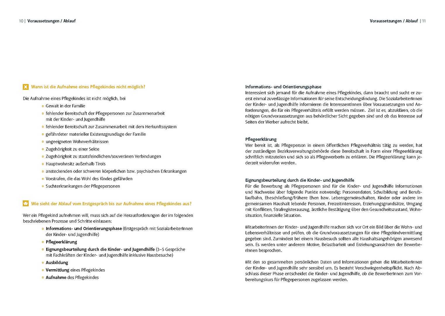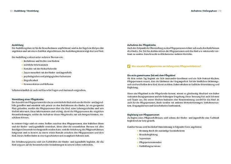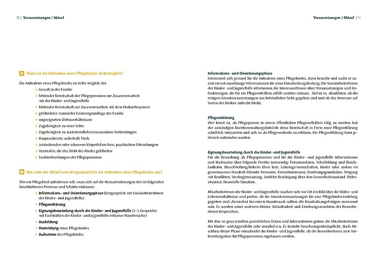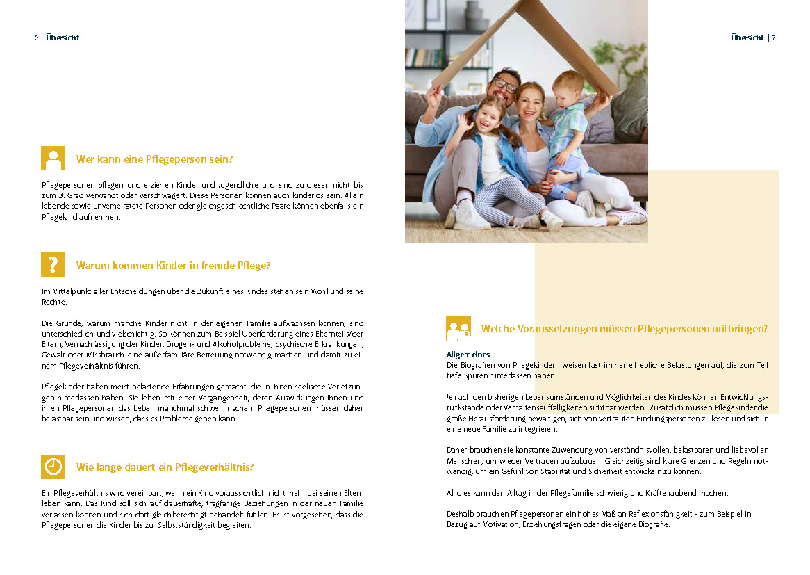 Die Entscheidung, ein Kind bei sich in Pflege zu nehmen, bedingt eine höchstpersönliche Entscheidung mit langfristigen Veränderungen im familiären und persönlichen Umfeld. Die Infobroschüre für Pflegepersonen bietet weitere und umfangreiche Informationen.