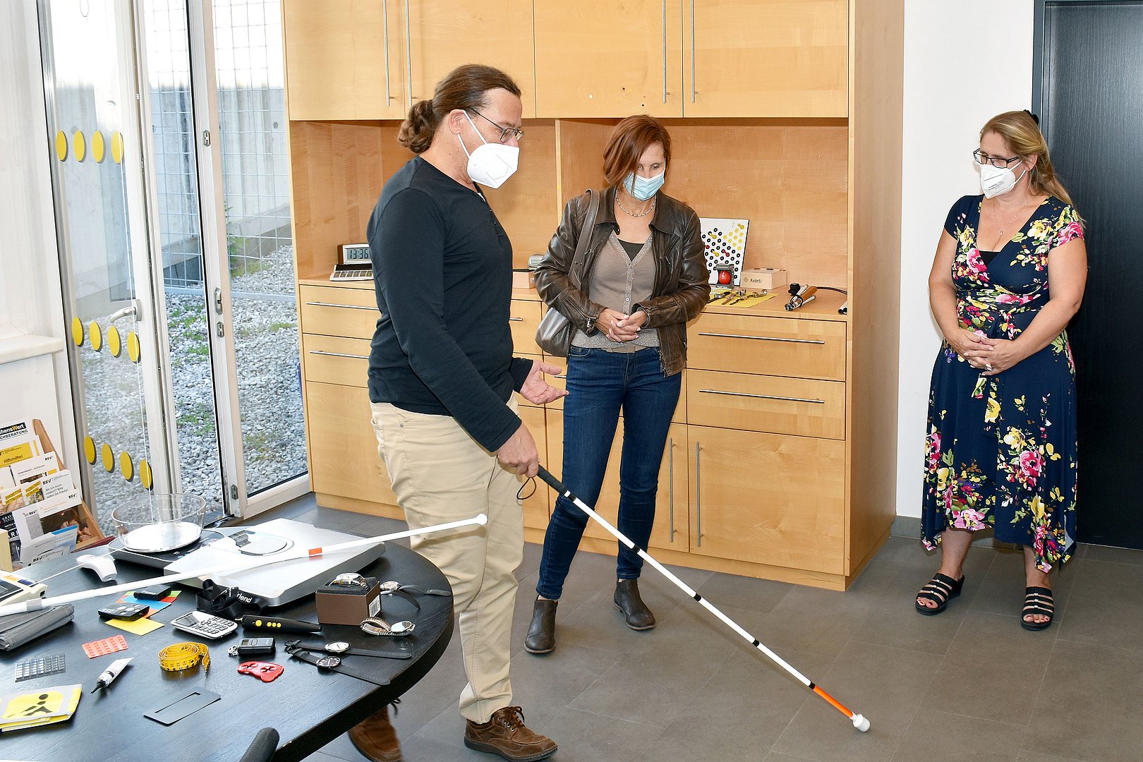 Ein weiteres Angebot des Verbands stellt die Rehabilitation für Blinde und Sehbehinderte dar. Im Zuge dessen werden die Betroffenen begleitet und ihre Fähigkeit zur Bewältigung von Alltagssituationen geschult „Im Mittelpunkt steht das Training von Orientierung und Mobilität. Hierbei geht es um Techniken – etwa der Umgang mit dem Blindenstock – die helfen, sich auch außerhalb der eigenen vier Wände zurecht zu finden“, erklärt Christian Wanka, Koordinator der Rehabilitationsabteilung. „Zudem unterstützen wir Menschen im Training von 'lebenspraktischen Fertigkeiten'. Diese reichen vom Lesen der Blindenschrift bis zu alltäglichen Herausforderungen, wie etwa dem Nägel-Knipsen. Immer mehr spielt auch der Umgang mit digitalen Hilfsmitteln, wie etwa Smartphones oder Computer, eine wichtige Rolle. All dies erweitert letztlich den Handlungs- und Bewegungsradius und fördert die Möglichkeit der Blinden- und Sehbehinderten sich mobil im öffentlichen Raum zu bewegen.“