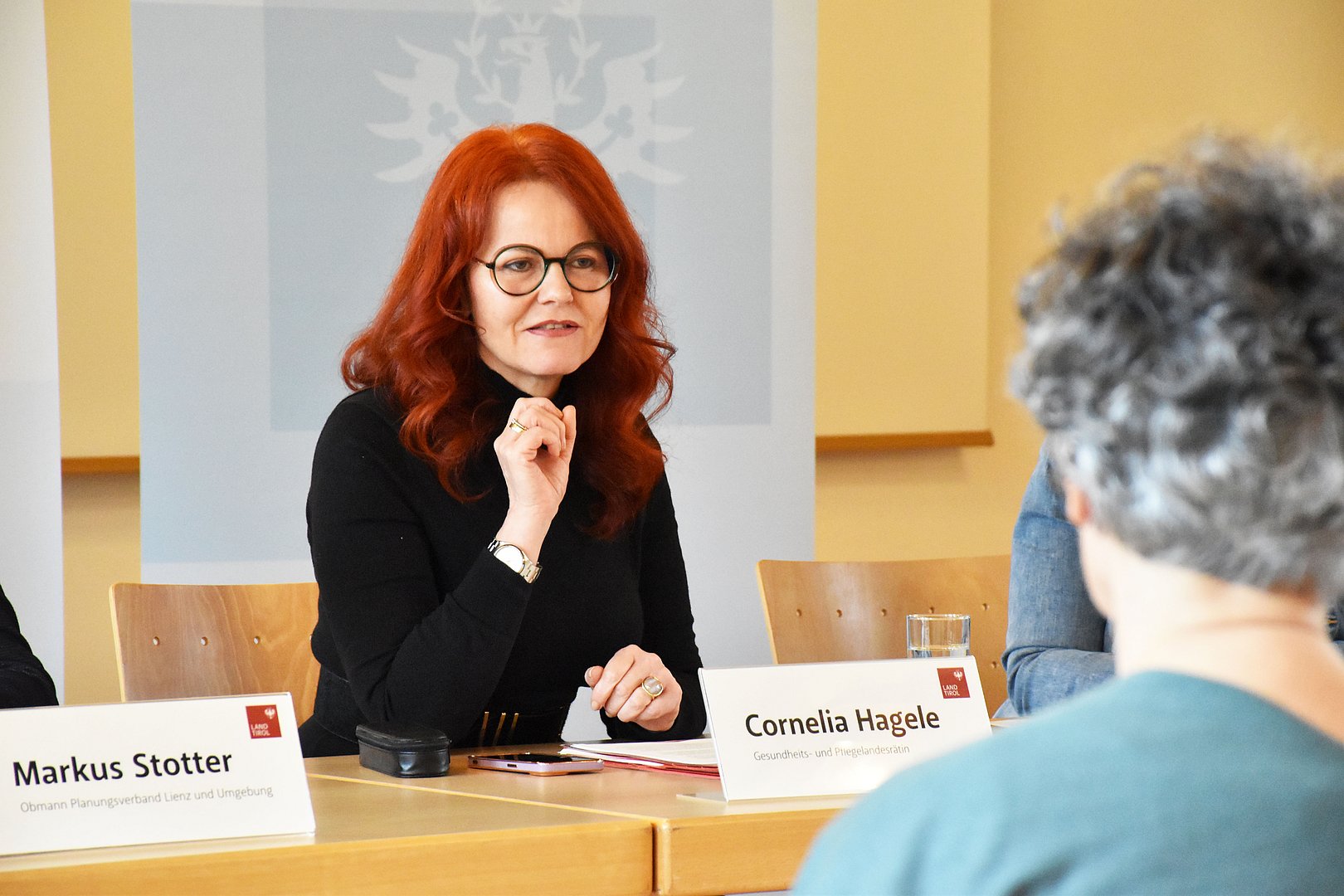 In der Bezirkshauptmannschaft Lienz präsentierte heute, Donnerstag, Gesundheits- und Pflegelandesrätin Cornelia Hagele gemeinsam mit Kathrin Eberle, Vorständin der Abteilung Pflege des Landes und den Vertretern der Planungsverbände den Strukturplan Pflege für die Jahre 2023 bis 2033. Dieser umfasst die aktuelle Personal- und Versorgungssituation im Bezirk Lienz sowie vorgesehene Bedarfsanpassungen und alternative Versorgungsmöglichkeiten wie Betreutes Wohnen und die Tagespflege. Der Strukturplan Pflege bietet eine Entscheidungsgrundlage für die weiteren Maßnahmen im Bereich Pflege, an denen gemeinsam mit den Planungsverbänden in den kommenden Jahren gearbeitet wird.