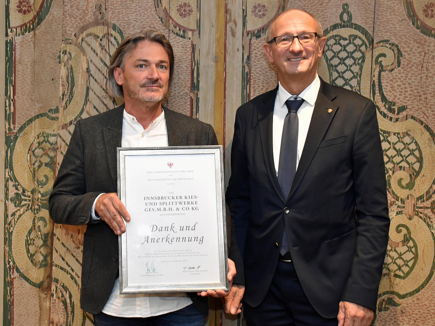 Geehrtes Unternehmen aus dem Bezirk Innsbruck-Land – Betriebsjubiläum im Jahr 2020: