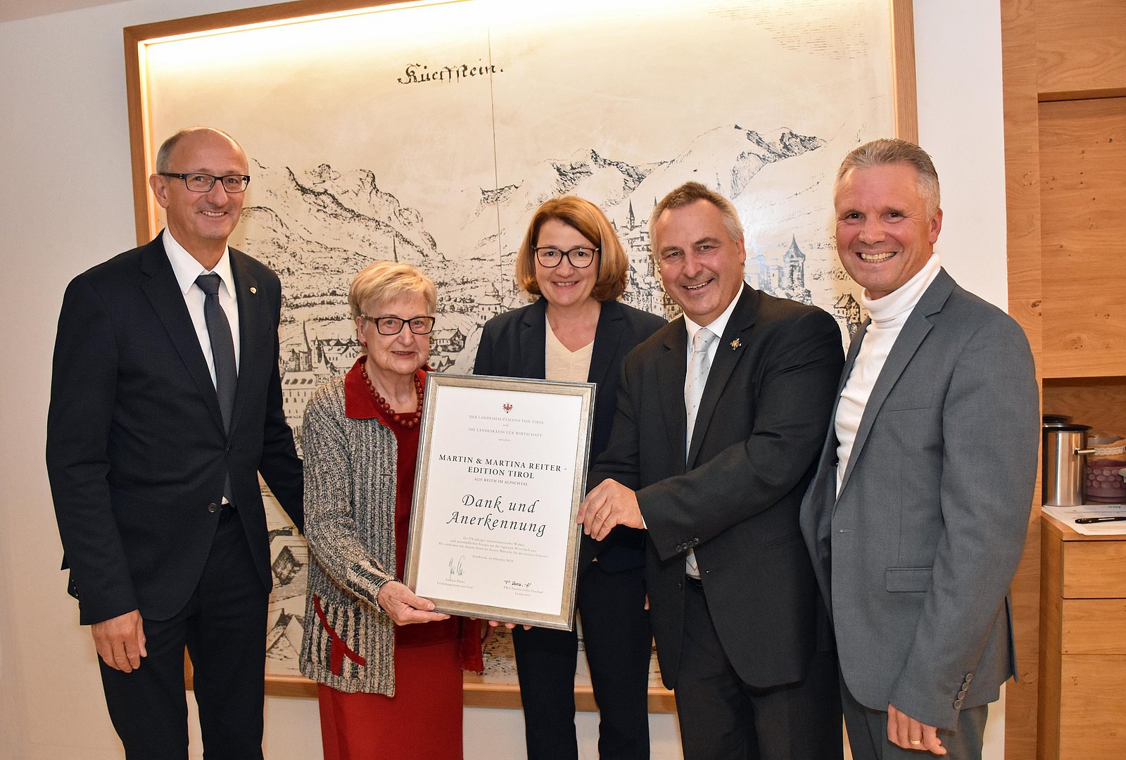 Am vergangenen Mittwoch ehrte Wirtschaftslandesrat Anton Mattle VertreterInnen von fünf Tiroler Traditionsbetrieben aus dem Bezirk Kufstein für ihre Verdienste um die Tiroler Wirtschaft. Mit der Ehrung „Tiroler Traditionsbetrieb“ werden Unternehmen ausgezeichnet, die ein rundes Betriebsjubiläum von mindestens 30 Jahren feiern. Die geehrten Firmen erhalten eine entsprechende Urkunde des Landes Tirol anlässlich ihrer Jubiläen im Jahr 2020. Die Ehrung erfolgt normalerweise zweimal jährlich im Frühling bzw. Herbst im Rahmen eines Festakts – Corona-bedingt konnte dies im vergangenen Jahr 2020 nicht stattfinden.