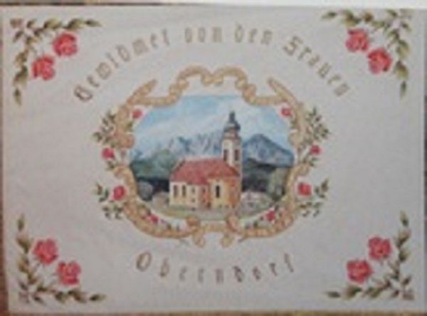 Das in Mischtechnik gemalte Bild misst 12 x 17 cm und besitzt einen ca. 8 cm breiten dunklen und glatten Rahmen. Auf dem Bild ist eine Ministrantengruppe in einer Prozession mit wehenden Fahnen dargestellt.