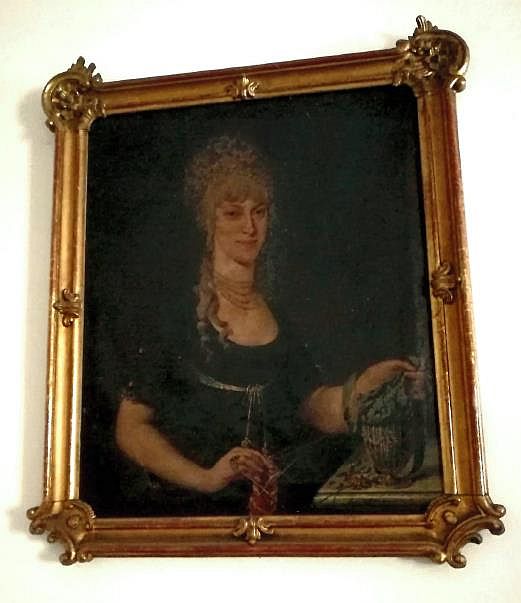5) Beschreibung Gemälde "Dame mit Täschchen": Öl auf Leinwand, um 1780. Holzrahmen geschnitzt vergoldet. Pendant zum "Schreibenden Herrn".