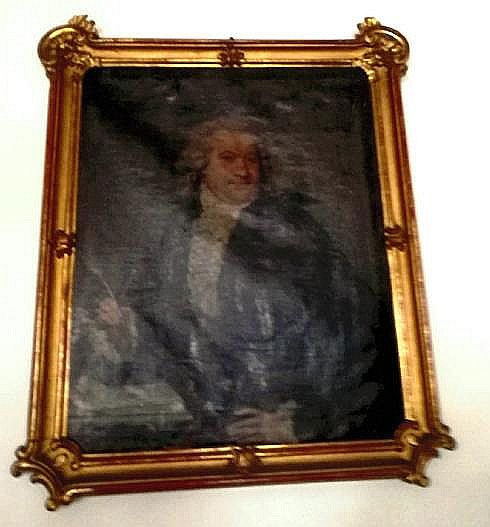 6) Beschreibung Gemälde "Schreibender Herr": ", Öl auf Leinwand, um 1780. Holzrahmen geschnitzt vergoldet. Pendant zur "Dame mit Täschchen".