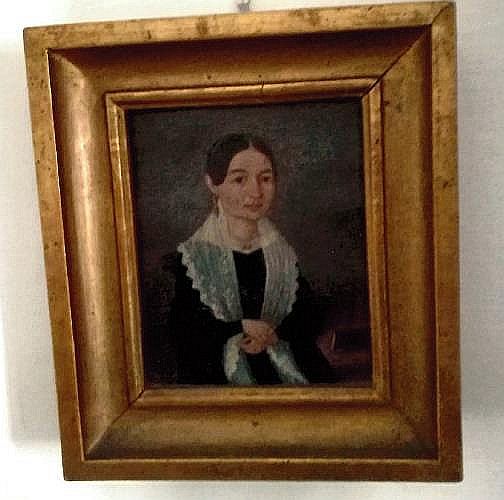 7) Beschreibung Gemälde "Dame mit Schultertuch": Öl auf Leinwand, Biedermeier. Holzrahmen geschnitzt vergoldet.