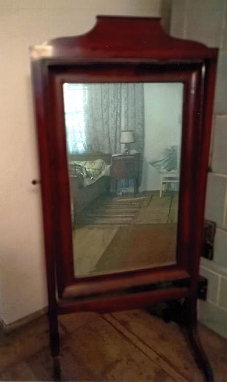 3) Beschreibung "Standspiegel" (sog. Psyché): Holz geschnitzt, um 1900.