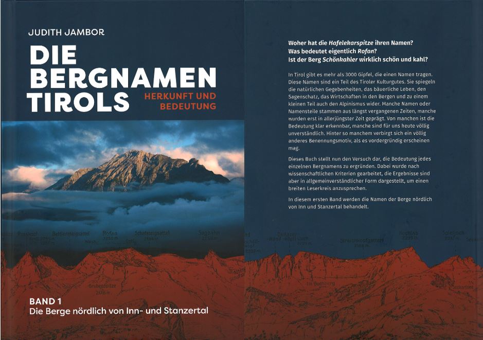 - NEU - Veröffentlichungen des Tiroler Landesarchivs Nr. 29, Judith Jambor, Die Bergnamen Tirols. Herkunft und Bedeutung. Band 2 - Die Berge südlich von Inn- und Stanzertal und westlich des Wipptals. Innsbruck 2025, 318 S. Eigenverlag des Tiroler Landesarchivs. ISBN 978-3-901464-32-4, erhältlich im tiroler Landesarchiv um € 15,00, bei Versand zuzüglich Porto (landesarchiv@tirol.gv.at oder Tel.-Nr. +43 512 508 3500).