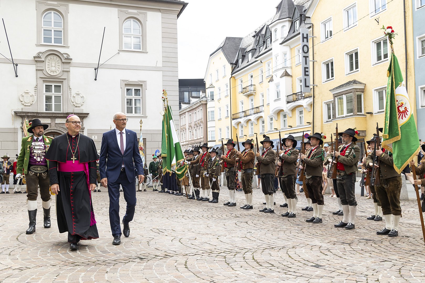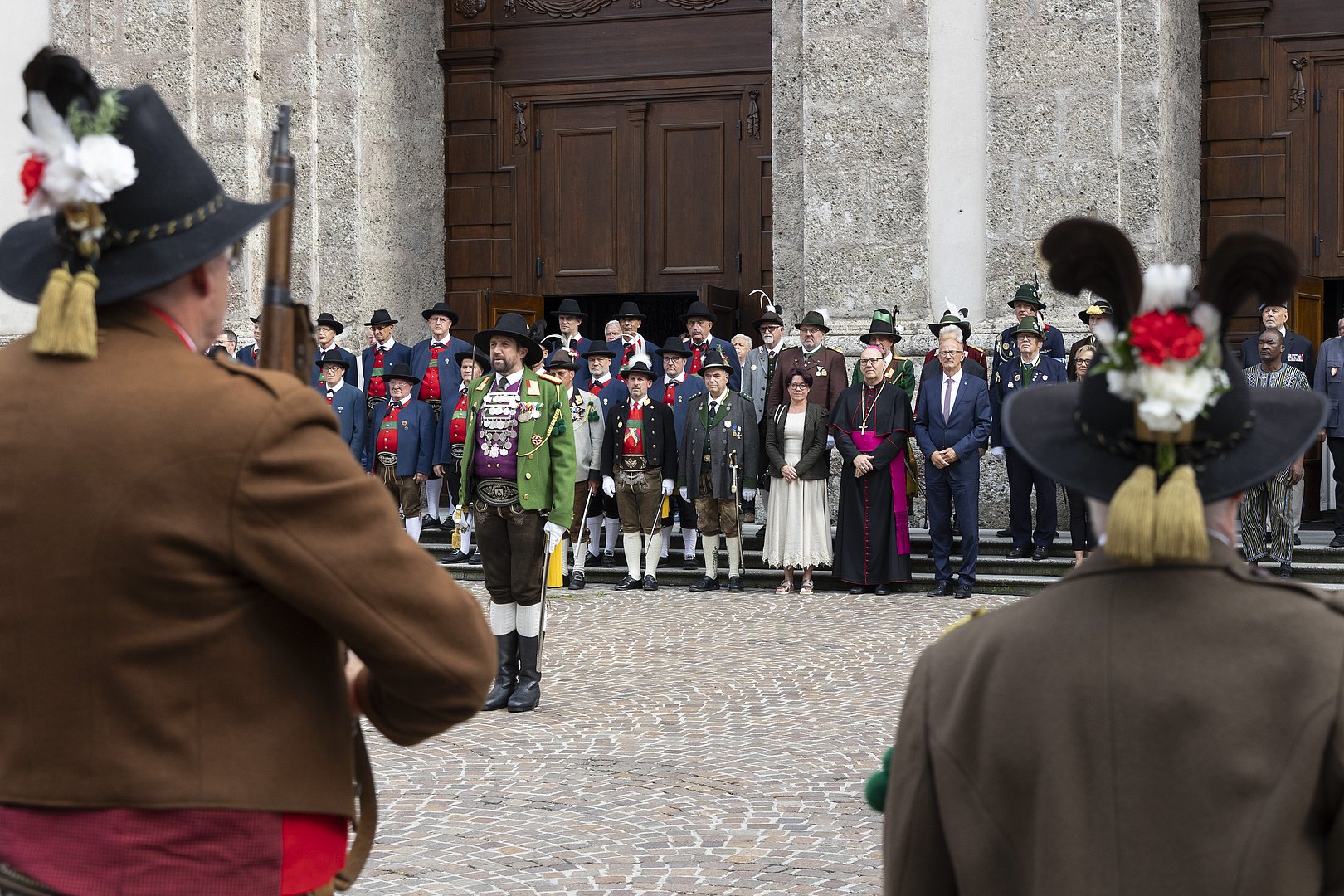 LH Anton Mattle, Landtagspräsidentin Sonja Ledl-Rossmann sowie weitere Mitglieder der Tiroler Landesregierung und des Tiroler Landtages nahmen an der Messe mit Bischof Hermann Glettler teil. Begleitet wurden die Feierlichkeiten von der Schützenkompanie Amras, der Musikkapelle Amras-Innsbruck und den Fahnenabordnungen der Tiroler Traditionsverbände.