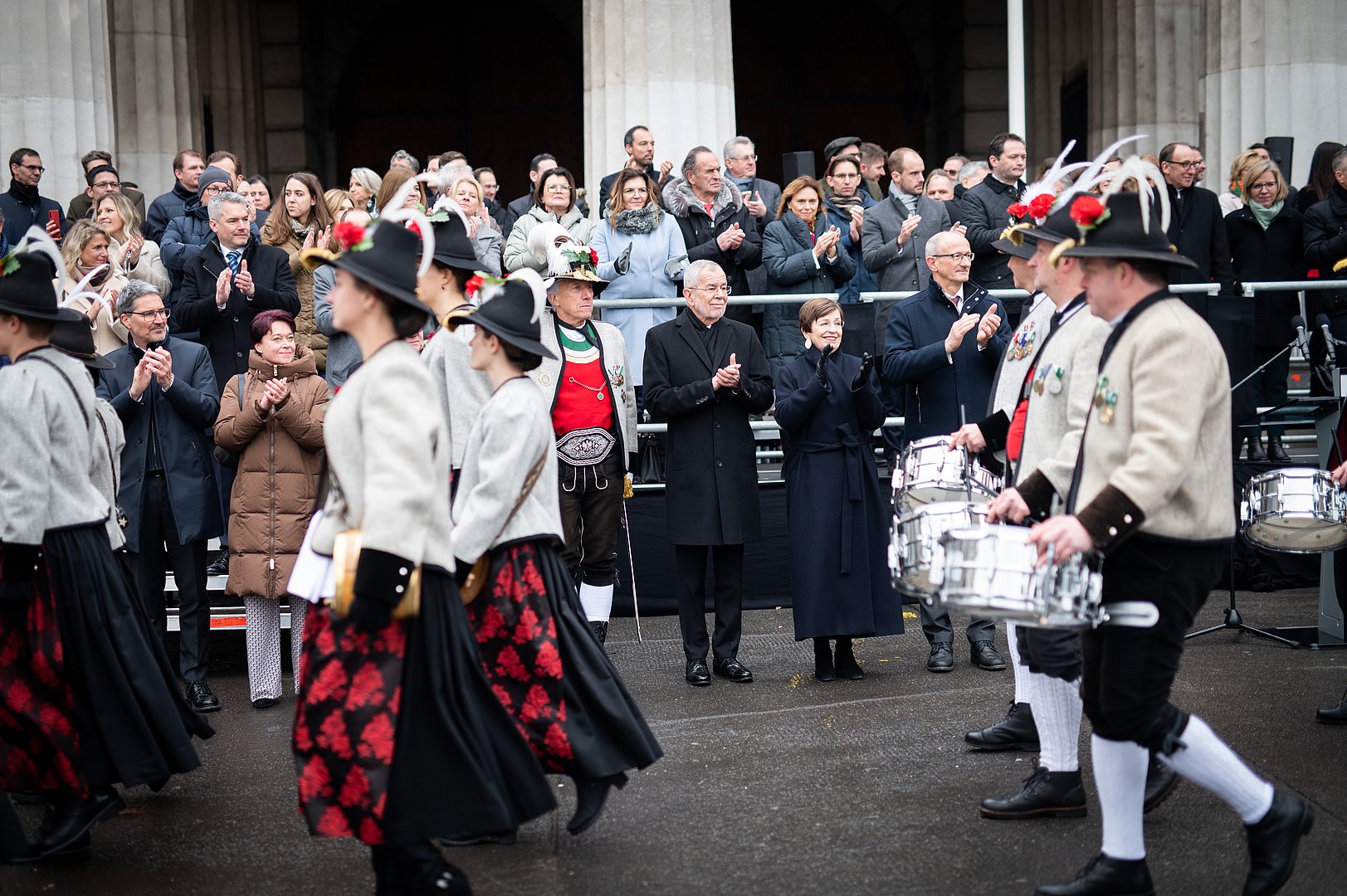Schützen, MusikantInnen und Mitglieder der Traditionsverbände aus Tirol sorgten heute, Donnerstag, für ein starkes Zeichen aus Tirol in Wien: Zur Angelobung von Bundespräsident Alexander Van der Bellen reisten sie in die Bundeshauptstadt, um den wiedergewählten Bundespräsidenten einen besonderen Gruß aus seinem Heimat-Bundesland zukommen zu lassen: den Landesüblichen Empfang.