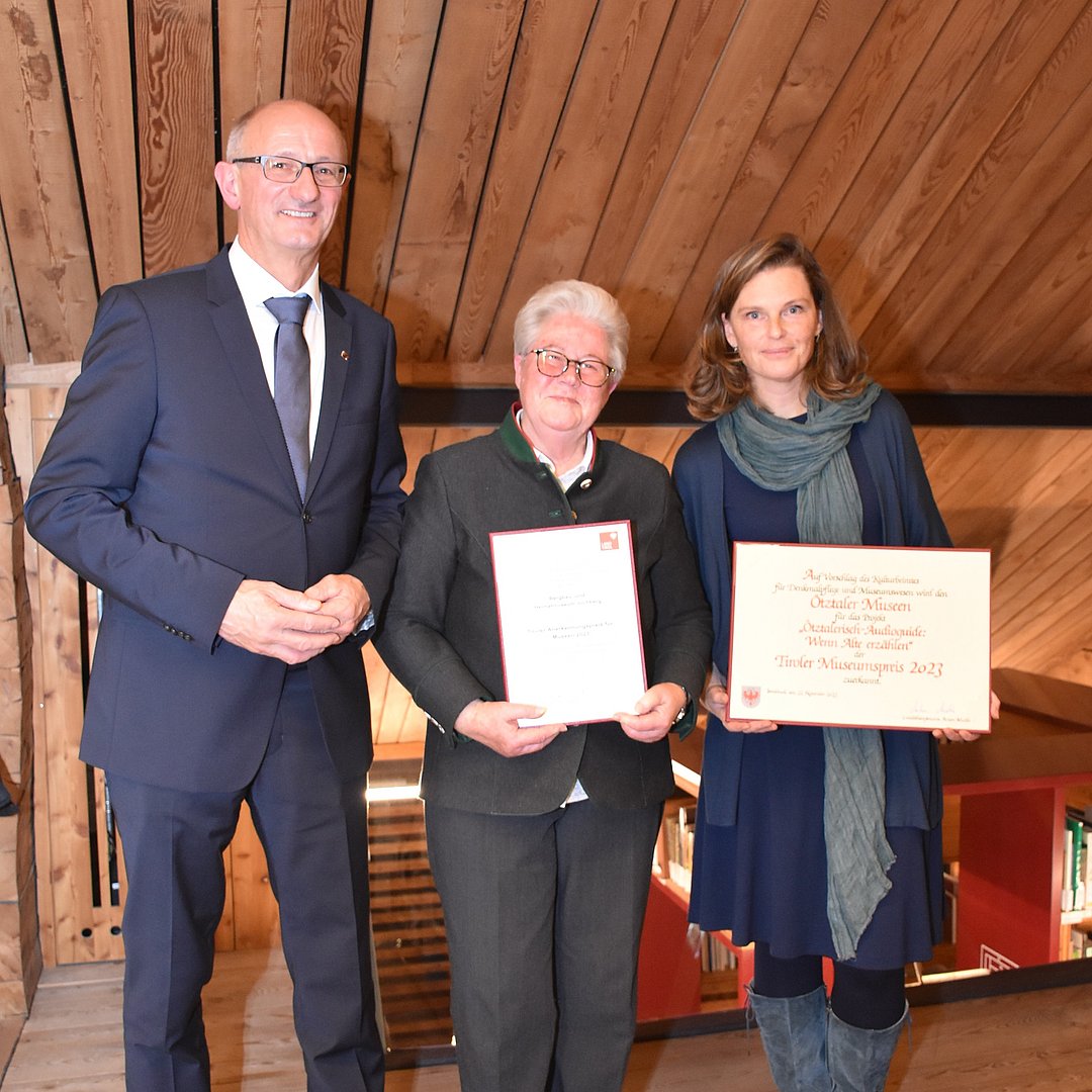 „Mit der Verleihung des Tiroler Museumspreises 2023 wird die besonders innovative Arbeit der Ötztaler Museen gewürdigt. Gleichzeitig soll die Preisvergabe auch Ansporn für andere Museen in Tirol sein, spannende Themen aufzugreifen und herausfordernde Projekte umzusetzen. Ich gratuliere herzlich und danke allen am Projekt Beteiligten, insbesondere der Museumsleiterin Edith Hessenberger und dem gesamten Museumsteam“, betont Kulturreferent LH Mattle.