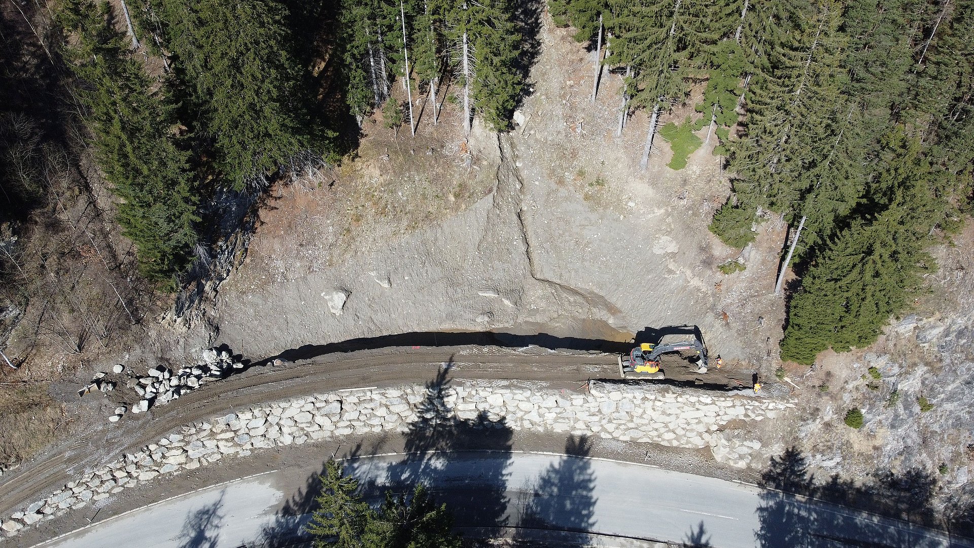 Der im Jahr 2020 fertiggestellte 85 Meter lange und sechs Meter hohe Schutzdamm oberhalb der B 171 wurde durch die Hangbewegungen der letzten Wochen massiv in Mitleidenschaft gezogen und muss instandgesetzt und saniert werden. Allein seit Weihnachten ist eine Geschiebemenge von 30.000 Kubikmeter abgerutscht. Das entspricht rund 3.750 Lkw-Ladungen.