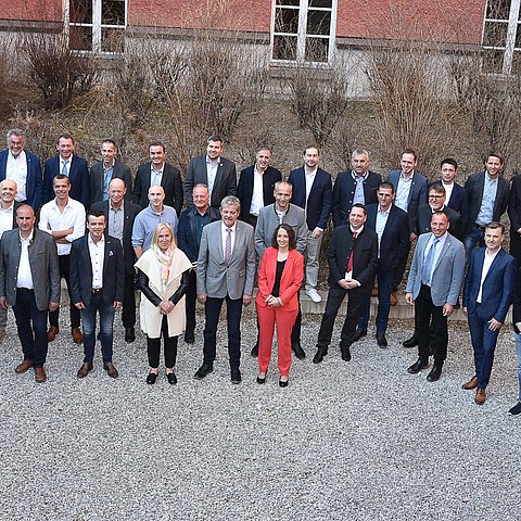 Gruppenfoto der Mitglieder der Bezirkseinsatzleitung Landeck im Innenhof der Bezirkshauptmannschaft