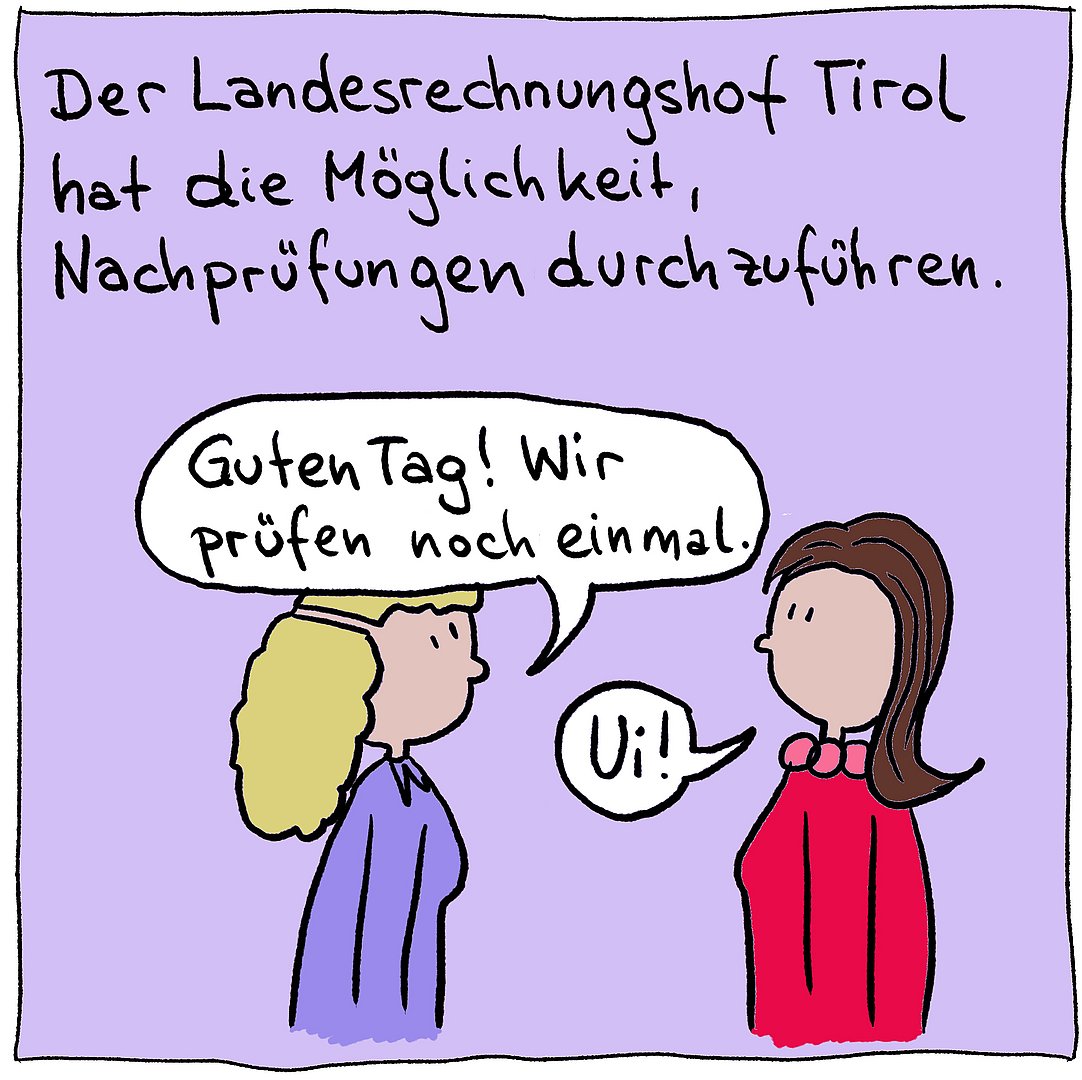 Die Verfassungsrechtslage sieht momentan eine Prüfungskompetenz für die Gebarung des Landes Tirol und seiner Unternehmen durch beide Kontrolleinrichtungen vor. Daher ist derzeit eine Abstimmung der Prüfungsvorhaben erforderlich, welche in ständigen persönlichen Kontakten vorgenommen wird.