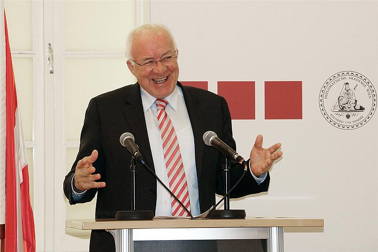 Die Diplomatische Akademie Wien, das Bundesministerium für Europa, Integration und Äußeres sowie das Austria Institut für Europa- und Sicherheitspolitik luden vergangene Woche anlässlich des 60. Jahrestages des Beitritts Österreichs zum Europarat in den Festsaal der Diplomatischen Akademie zu einer Podiumsdiskussion ein, die ganz im Zeichen dieser Feierlichkeiten stand. Neben dem Richter am Verfassungsgerichtshof und Völkerrechtsprofessor Christoph Grabenwarter, dem ehemaligen Generalsekretär des Europarates Walter Schwimmer und der Nationalratsabgeordneten Gisela Wurm war auch LTP Herwig van Staa in seiner Funktion als langjähriges Präsidiumsmitglied und ehemaliger Präsident des Kongresses der Gemeinden und Regionen im Europarat am Podium vertreten.