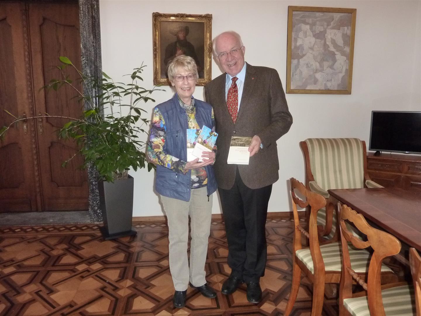 Gemeinsam mit ihrem Mann überbrachte die Innsbrucker Autorin Angela Jursitzka Landtagspräsident Herwig van Staa eine Ausgabe ihres aktuellen Werkes „Die Ehre der Frau Hitt“ - Erzählungen, der sich sichtlich darüber freute: „Ein herzliches Dankeschön an Frau Jursitzka für dieses neueste Werk, in dem sie sich nicht nur mit der Legende um die legendäre Frau Hitt auseinandersetzt, sondern auch in weiteren eindrucksvollen Kurzgeschichten interessante Einblicke in eigene Erlebnisse und Stimmungsbilder gibt“.