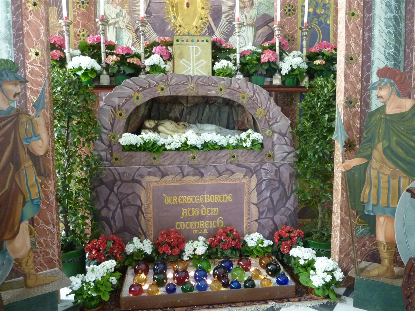 Nachdem es in der Georgskapelle schon im 17. Jahrhundert erstmals ein Heiliges Grab gegeben hat, konnte diese Tradition nach einer mehrere Jahrzehnte dauernden Unterbrechung im Jahr 2000 wieder aufgenommen werden. Das nunmehr ausgestellte Heilige Grab ist eine sehr schöne Leihgabe des Redemptoristenordens an der Herz-Jesu-Kirche in Innsbruck und wurde von Pater J. Weilharter im Jahr 1904 geschaffen.