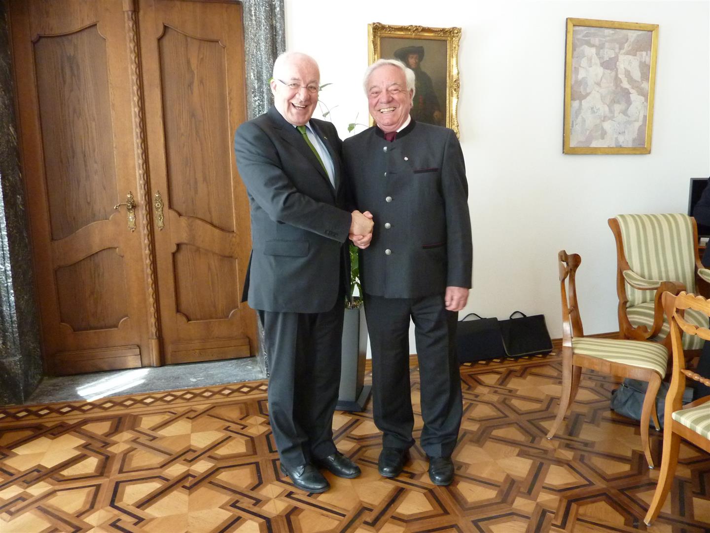 Der Berufstitel „Professor“ wurde bereits am 7. April 2016 in Wien an den langjährigen Direktor der Landesberufsschule für Elektrogewerbe in Innsbruck Erich Wörister verliehen. Heute lud Landtagspräsident Herwig van Staa den frischgebackenen Professor zu einer kleinen Feierstunde in seine Amtsräume.