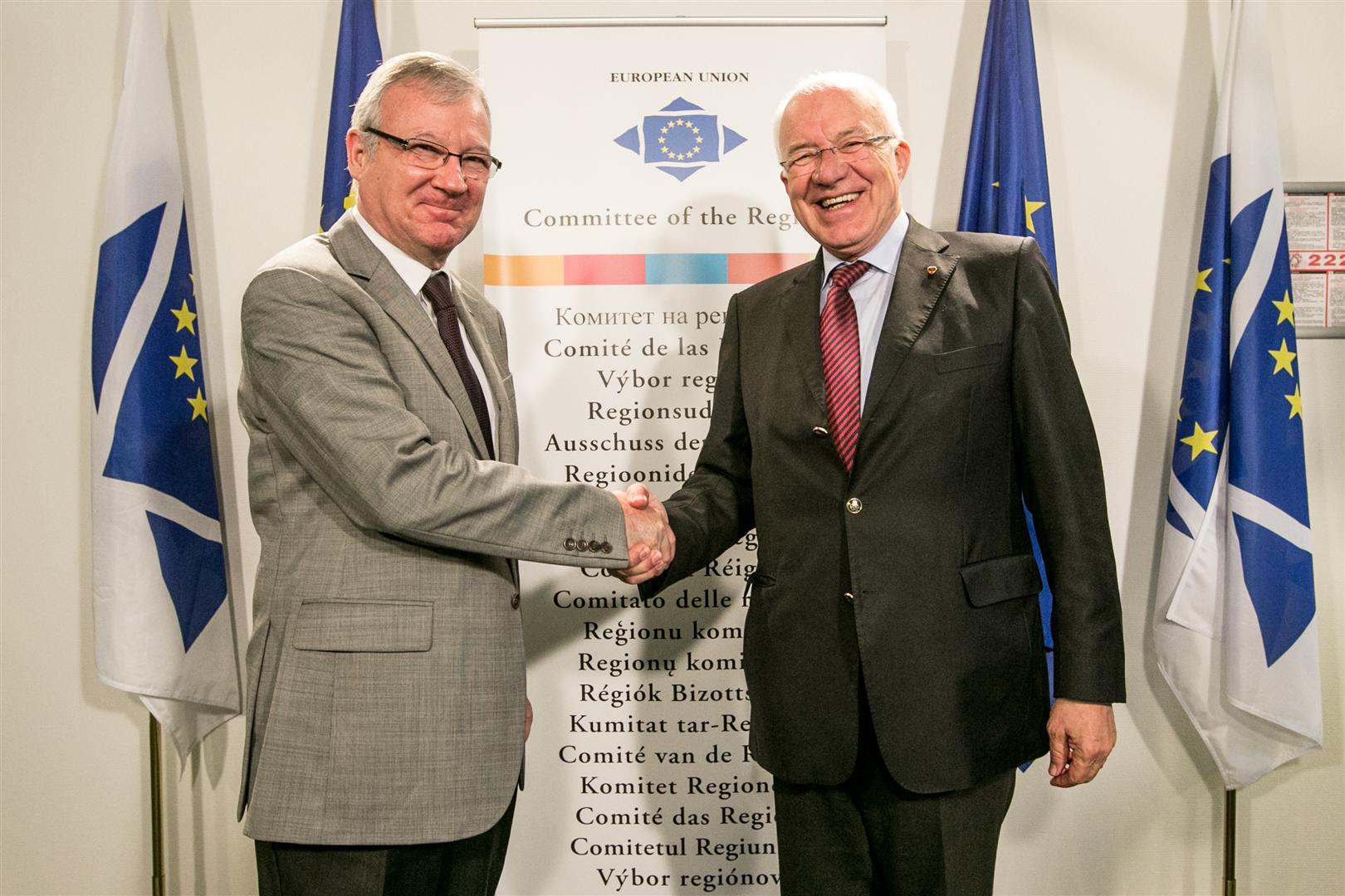 Am Rande der letzten Sitzung des Ausschusses der Regionen in Brüssel traf LTP Herwig van Staa in seiner Funktion als Präsident des Kongresses der Gemeinden und Regionen des Europarates mit dem Präsidenten des Ausschusses der Regionen (AdR) Luis Vacarcel Siso zu einem intensiven Gedankenaustausch zusammen.