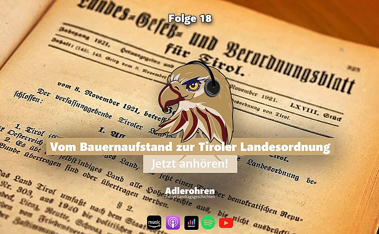 Dabei machen wir auch eine kleine Zeitreise zum Bauernkrieg im 16. Jahrhundert, zu Kaiser Franz Josef I. und in die Zeit der Republikgründung. Und stellen auch eine Besonderheit der Tiroler Landesordnung vor: die Präambel. Was es damit auf sich hat? Seid gespannt!