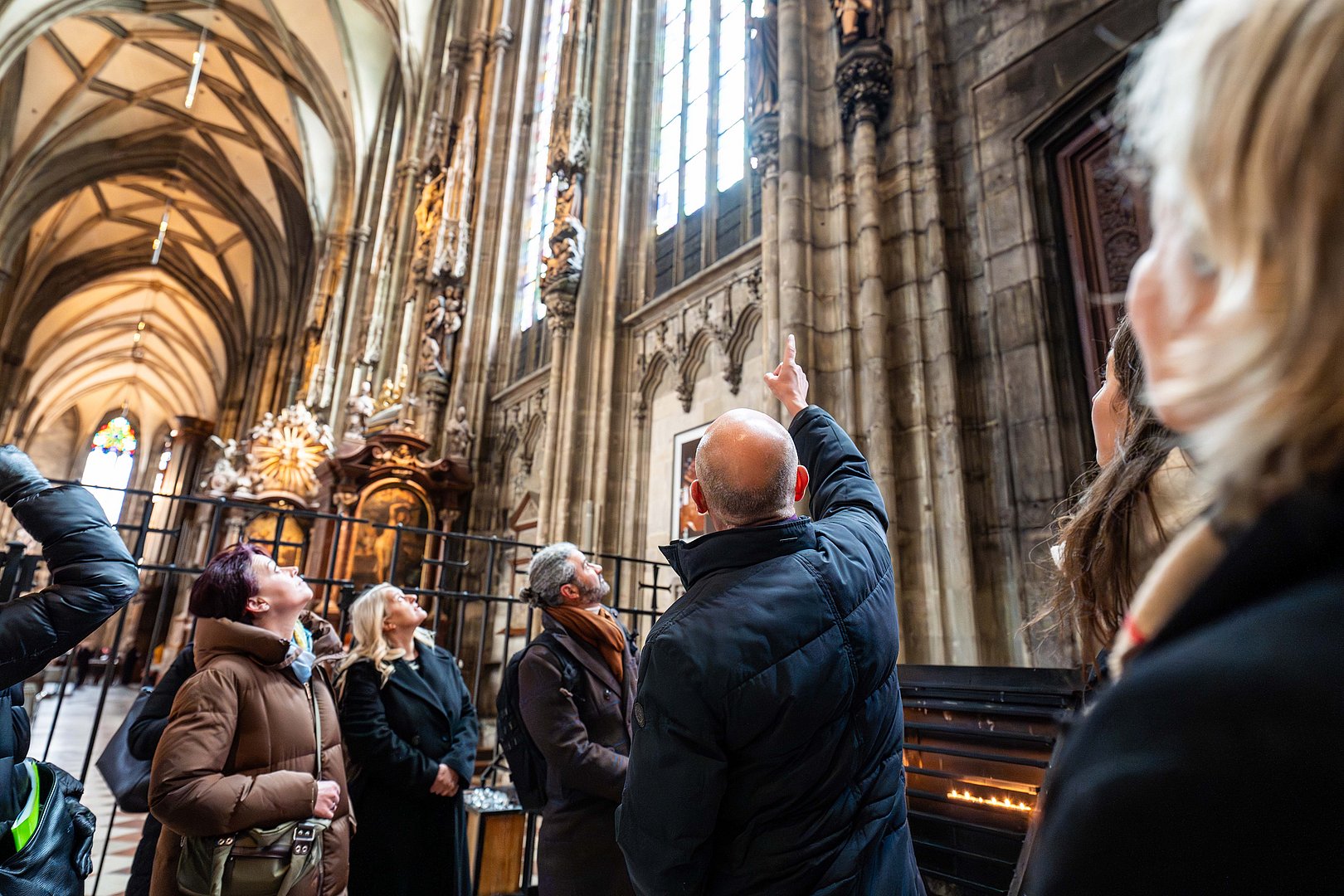 Dompfarrer Toni Faber führte die Gruppe durch das Wiener Wahrzeichen, den Stephansdom.© Tiroler Landtag/Christanell