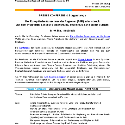 Sitzung des Ausschusses der Regionen in Innsbruck