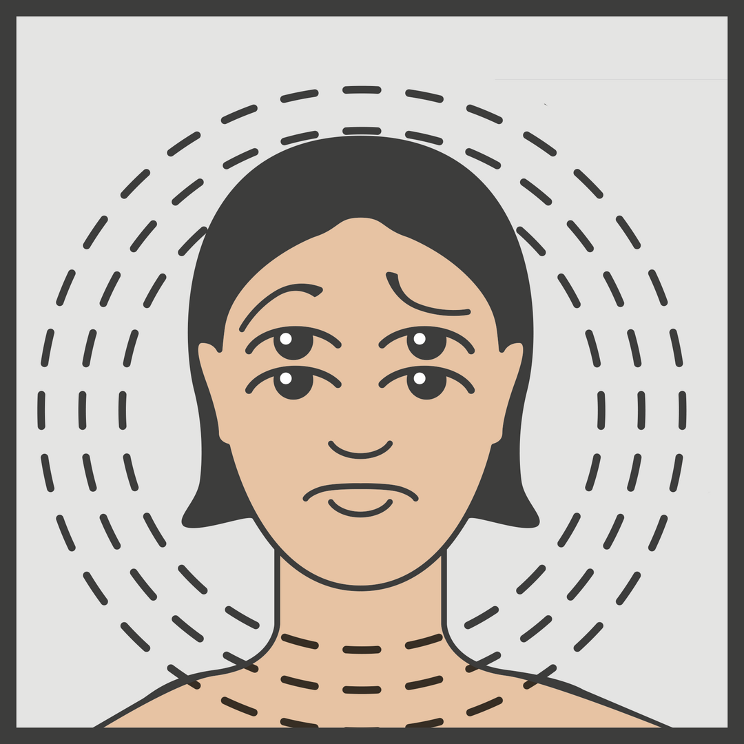 - Die beiden Gesichts-Hälften schauen verschieden aus,