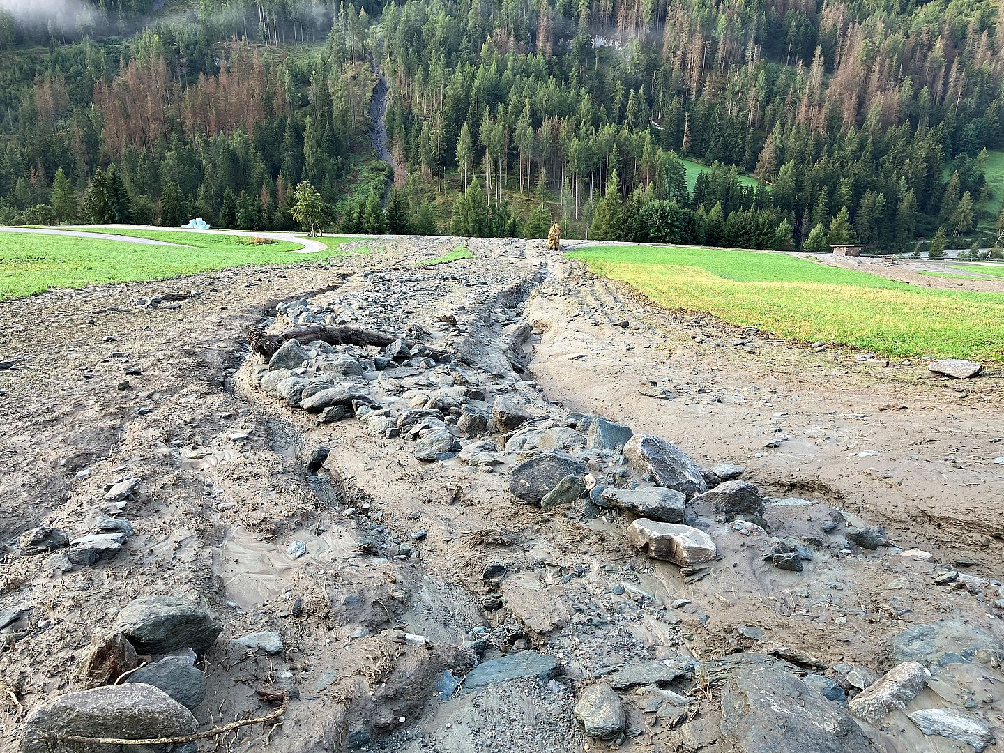 Nach mehreren Murenabgängen und teils auch Verklausungen heute Sonntagabend in Prägraten in Osttirol bleiben die L24 Virgentalstraße ab Gemeindegrenze zwischen Virgen und Prägraten sowie weitere Begleitstraßen und –wege jedenfalls bis morgen Früh gesperrt.