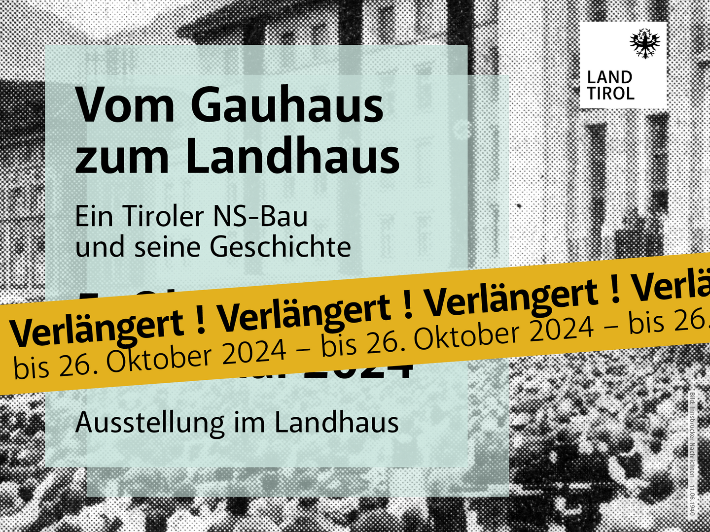 Weit über 7.000 BesucherInnen sind bisher in die Ausstellung „Vom Gauhaus zum Landhaus. Ein Tiroler NS-Bau und seine Geschichte“ gekommen. Die Präsentation in den ehemaligen Räumen der Gauleitung im Landhaus 1 in Innsbruck läuft noch bis 26. Oktober (Montag bis Freitag, jeweils 9 bis 17 Uhr, mit Ausnahme von Feiertagen). Ein reichhaltiges Rahmenprogramm begleitet die Ausstellung. Am Freitag, den 21. Juni 2024, um 16 Uhr findet wieder die kostenfreie Führung „Idee des auffliegenden Adlers. Die Architektur des Landhauses“ mit der Ausstellungskuratorin Hilde Strobl statt. Sie startet vor dem Eingang des Landhauses 1 am Eduard-Wallnöfer-Platz und ist ohne Anmeldung zugänglich.