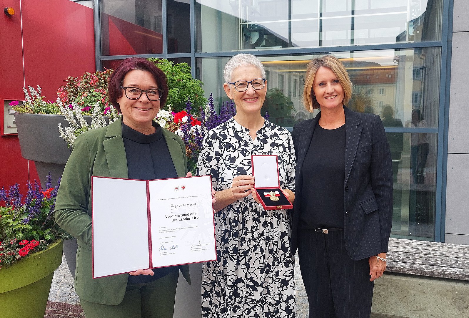Im Rahmen eines kleinen Festaktes wurde ihr nun von Landtagspräsidentin Sonja Ledl-Rossmann und Bezirkshauptfrau von Reutte, Katharina Rumpf, die Verdienstmedaille überreicht.
