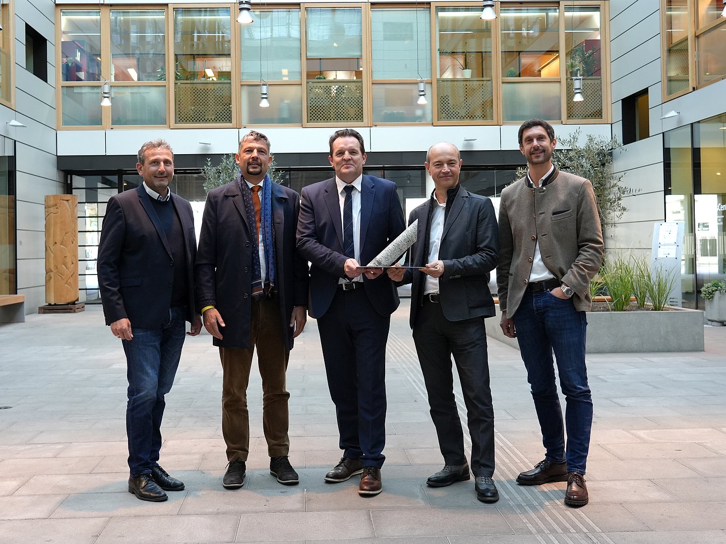 Bereits zu Beginn der Tiroler Präsidentschaft wurde in enger Zusammenarbeit mit dem Land Südtirol ein Vorzeigeprojekt realisiert: Schadholztransporte vom Pustertal bis ins Zillertal erfolgen seit Frühling 2023 auf der Schiene statt auf der Straße. Der bereits 2021 erfolgte Bau eines Verladeterminals in Jenbach sowie der 2022/2023 erfolgte notwendige Umbau am Bahnhof in Bozen machen es möglich, dass bis zu 200.000 Tonnen Holz pro Jahr mit der Bahn transportiert werden können. „Ein Vorzeigebeispiel dafür, dass vieles möglich ist, wenn alle an einem Strang ziehen. Der Schienentransport ist planbarer, energieeffizienter und natürlich auch klimafreundlicher“, hielt LR Zumtobel fest.